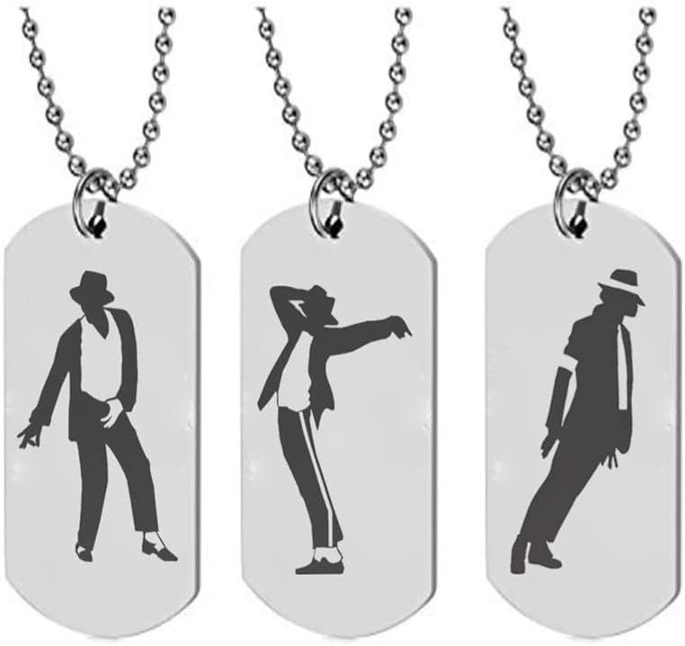 yihan المجوهرات 3 حزمة مجموعة واحدة مايكل البضائع المعلقات الفولاذ المقاوم للصدأ للجنسين MJ قلادة قلادة ملك البوب ​​راقصة نجمة التيتانيوم الصلب سحر قلادة القلائد لمحبي