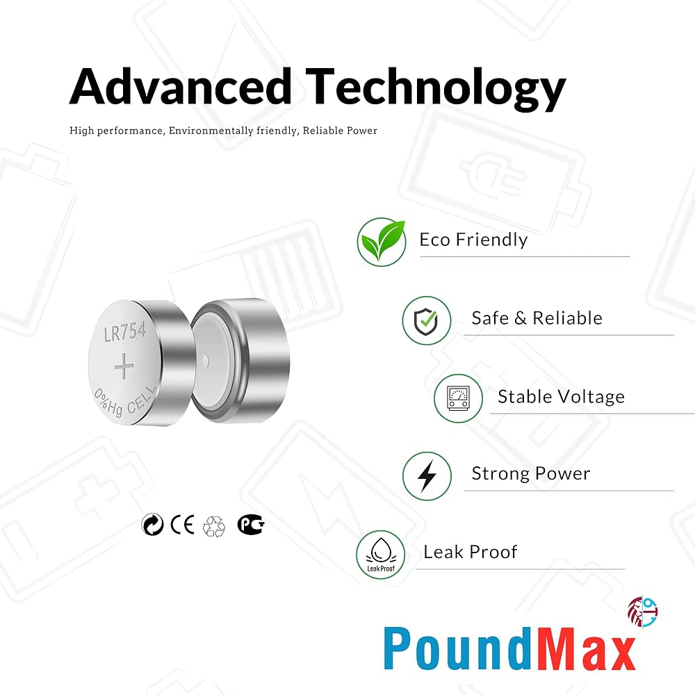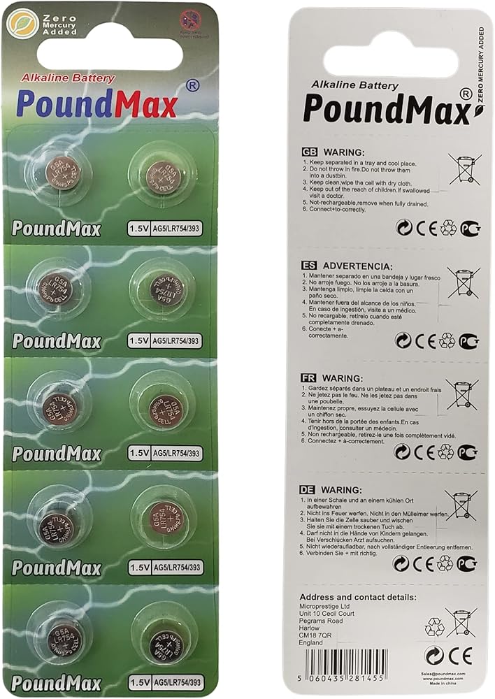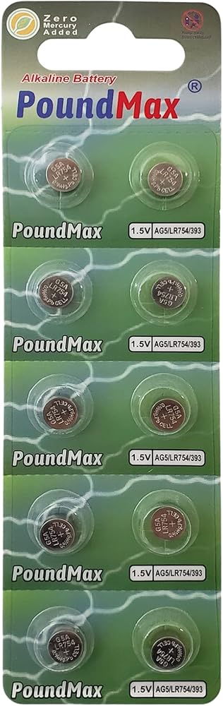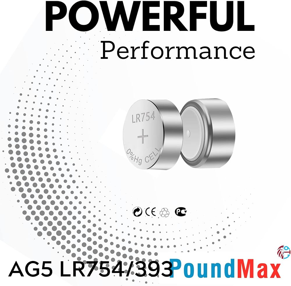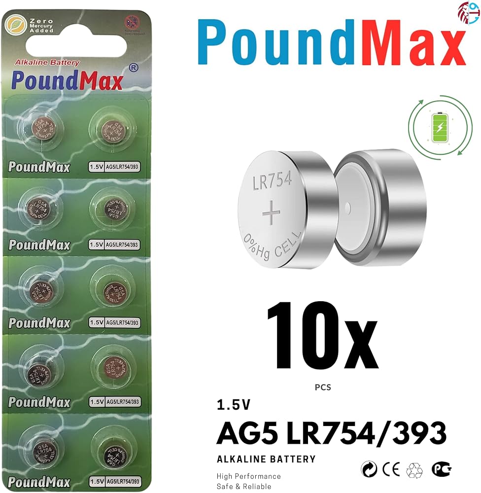 10 بطاريات ايه جي 5 (LR48، LR754، 393) 1.5 فولت - بطاريات خلوية زر قلوية باوند ماكس | 1 × 10 عبوات