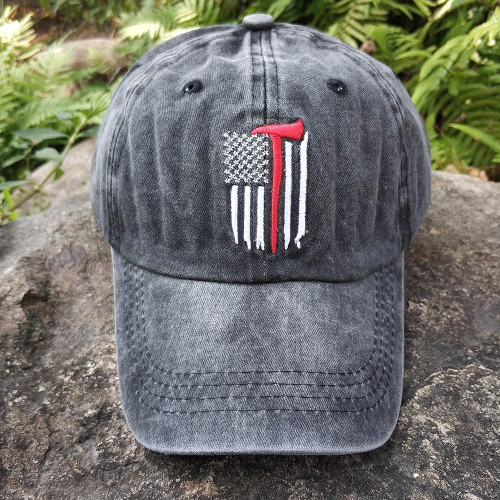قبعة بيسبول قديمة الطراز للرجال بخط أحمر رفيع علم الولايات المتحدة الأمريكية قبعة رجل إطفاء أبي