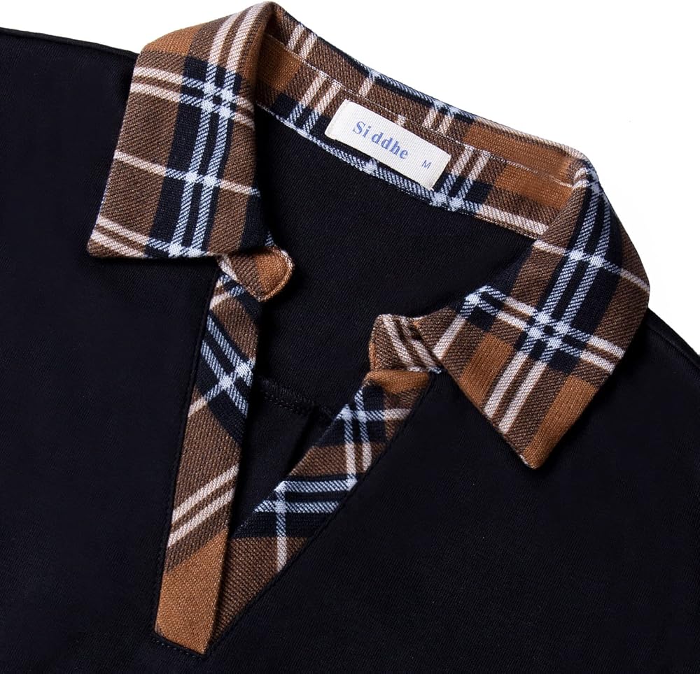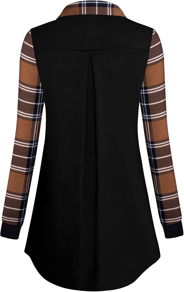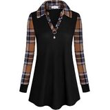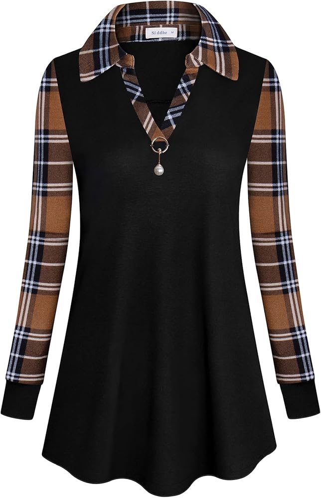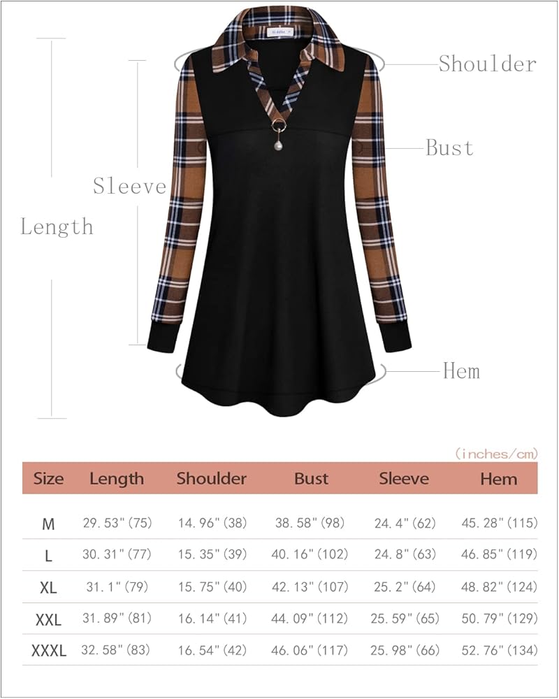 【خامة ناعمة 】هذا التونيك للخريف يتكون من 65% بوليستر، 30% قطن، 5% سباندكس. خامة القمصان طويلة الأكمام ليست ثقيلة مثل السترة، فهي خفيفة الوزن ومريحة. يتميز بدبوس بروش قابل للفصل، وياقة مطوية لأسفل، ورقبة على شكل حرف V، وأكمام طويلة مع رقع منقوشة ونمط فضفاض.