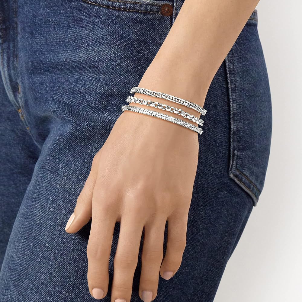 Ross-Simons is always looking for new ways to reinvent essential jewelry styles. Handcrafted in polished sterling silver, this set features curb-link, rolo-link and wheat-link bolo bracelets with 3mm beads at the end of the box chain. Wear together or individually, these bracelets will complete every look! Sliding mechanism adjusts to fit most wrists. Bolo bracelet set. Each Ross-Simons item arrives in a fine jewelry presentation box.