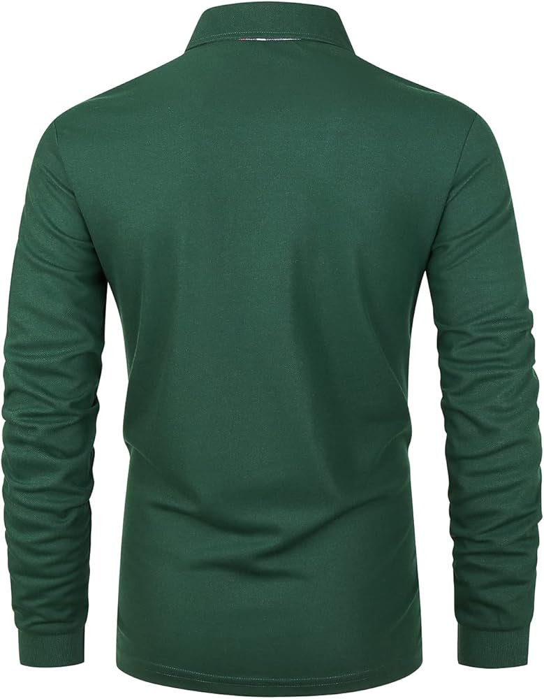 【نسيج بوليستر 100% مريح في الارتداء】قمصان بولو للرجال بأكمام طويلة مصنوعة من البوليستر الناعم، خفيف الوزن، سريع الجفاف، نسيج مسامي. يتميز بمقاومة رائعة للتجاعيد ولن يتغير شكله بسهولة بعد الغسيل، ولن تشعر بالحكة، ومريح جدًا عند ارتدائه. أساور الأكمام الطويلة مصنوعة من طريقة حياكة احترافية مع مرونة قوية، لذلك لن تنزلق الأكمام بسهولة عند لفها.