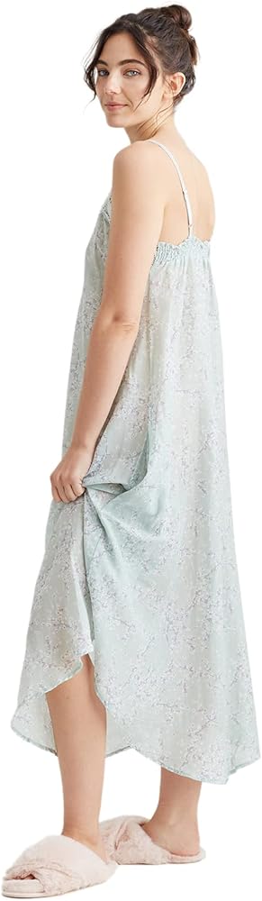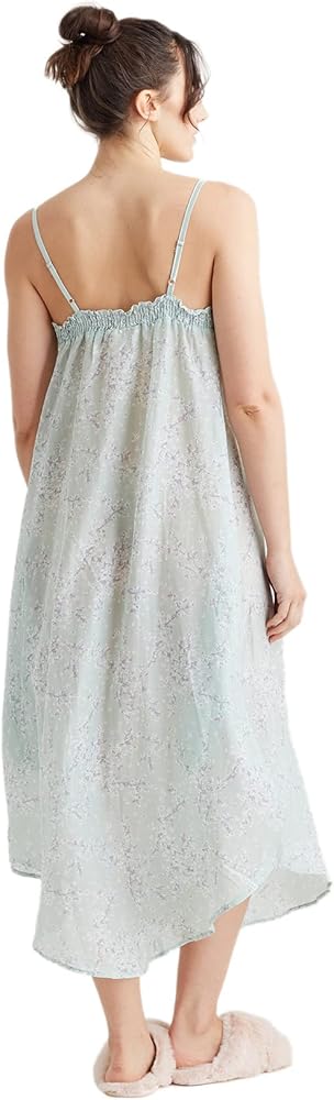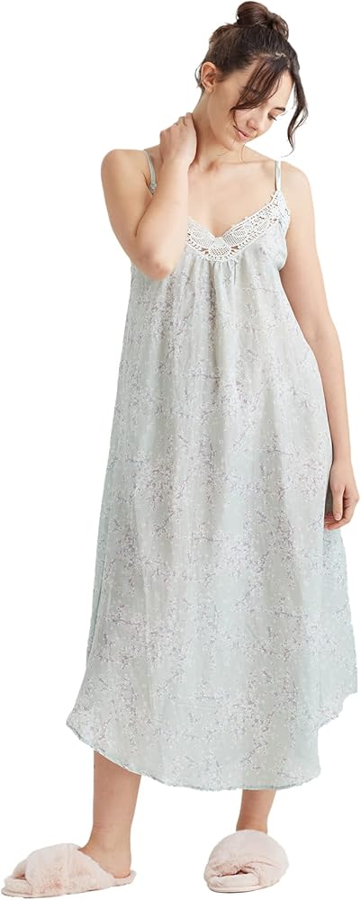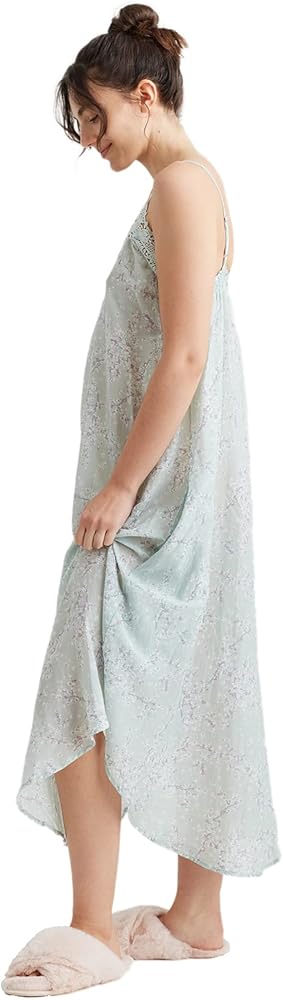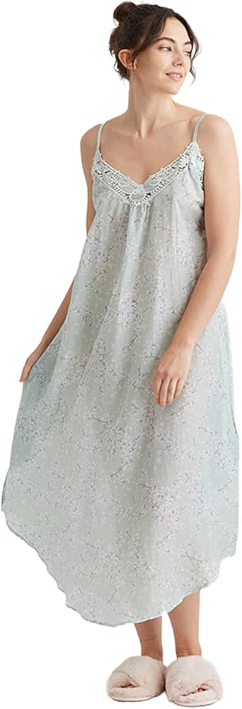 قميص نوم طويل نسائي من Papinelle بدانتيل أمامي من Cheri Blossom، مصنوع من مزيج الحرير القطني المميز، لون حكيم