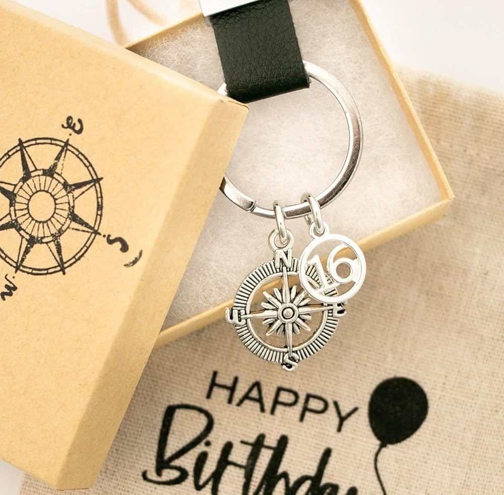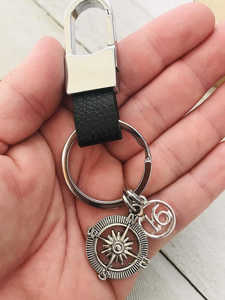 سلسلة مفاتيح من الجلد الطبيعي لعيد الميلاد السادس عشر أو التخرج تذكار