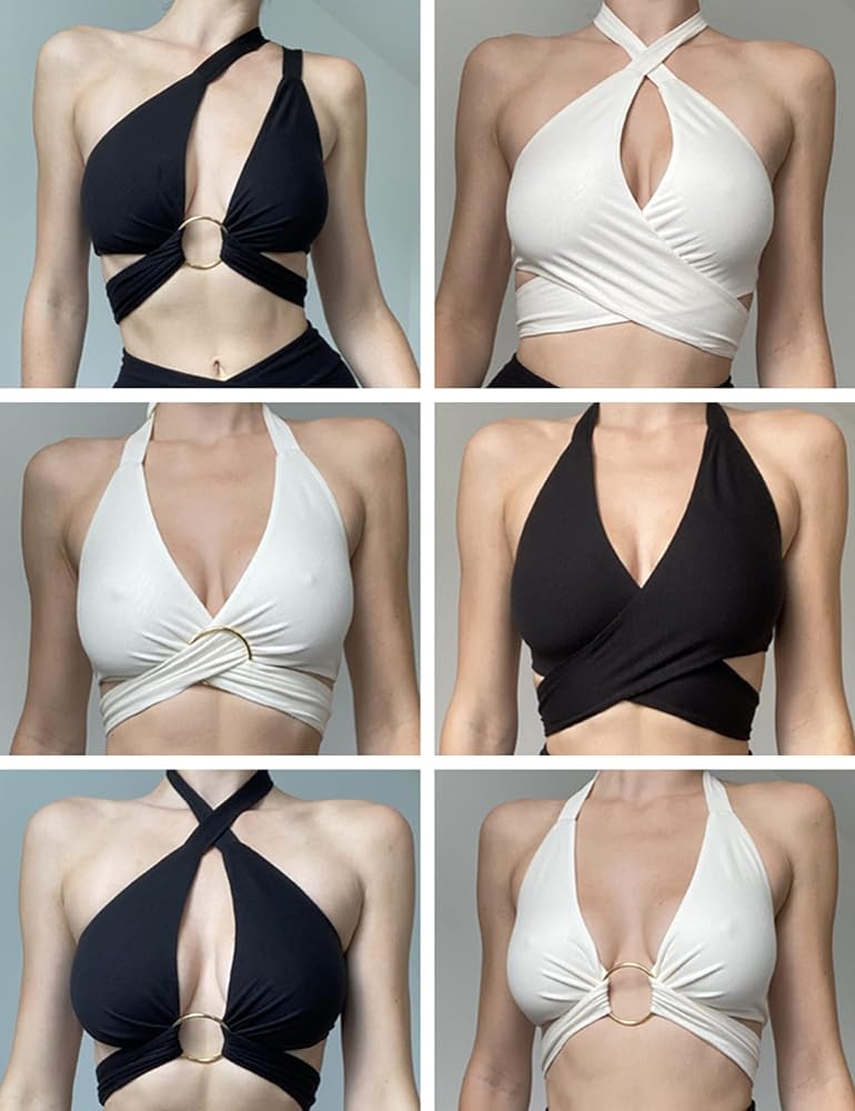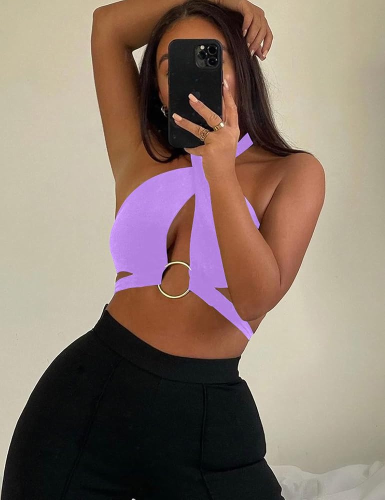 • المزايا: يتميز هذا القميص اللطيف للخروج برقبة عميقة على شكل حرف V، ورسن، بدون ظهر، وتصميم متقاطع، بدون أكمام، يلتف حول ربطات العنق، وربطة عنق ذاتية، وجزء علوي لطيف مع حلقة ذهبية قابلة للفصل يمكن استخدامها للتغذية من خلال الأشرطة. يمكنك ربطه بأي طريقة تريدها، بطرق متعددة للارتداء، كقميص بدون أكمام بكتف واحد، تي شيرت علوي برباط ذاتي، قميص قصير، رائع لفصل الصيف والربيع والخريف
