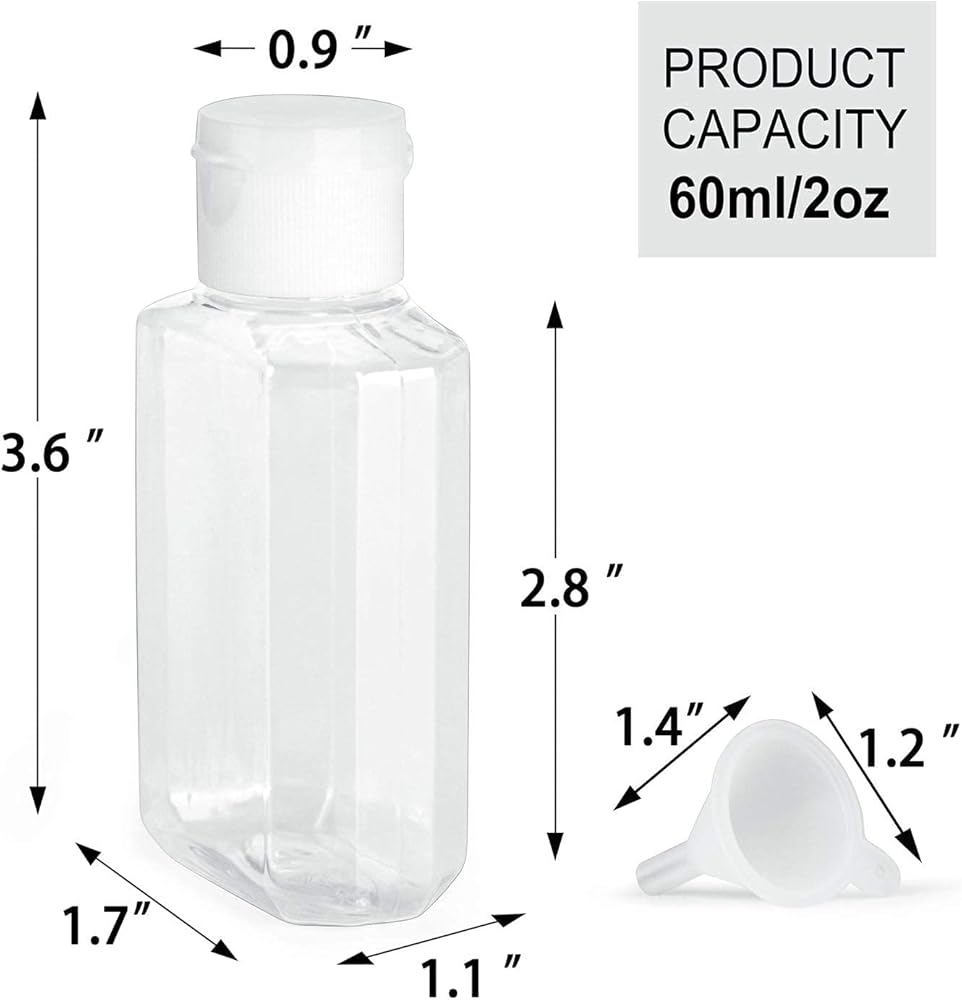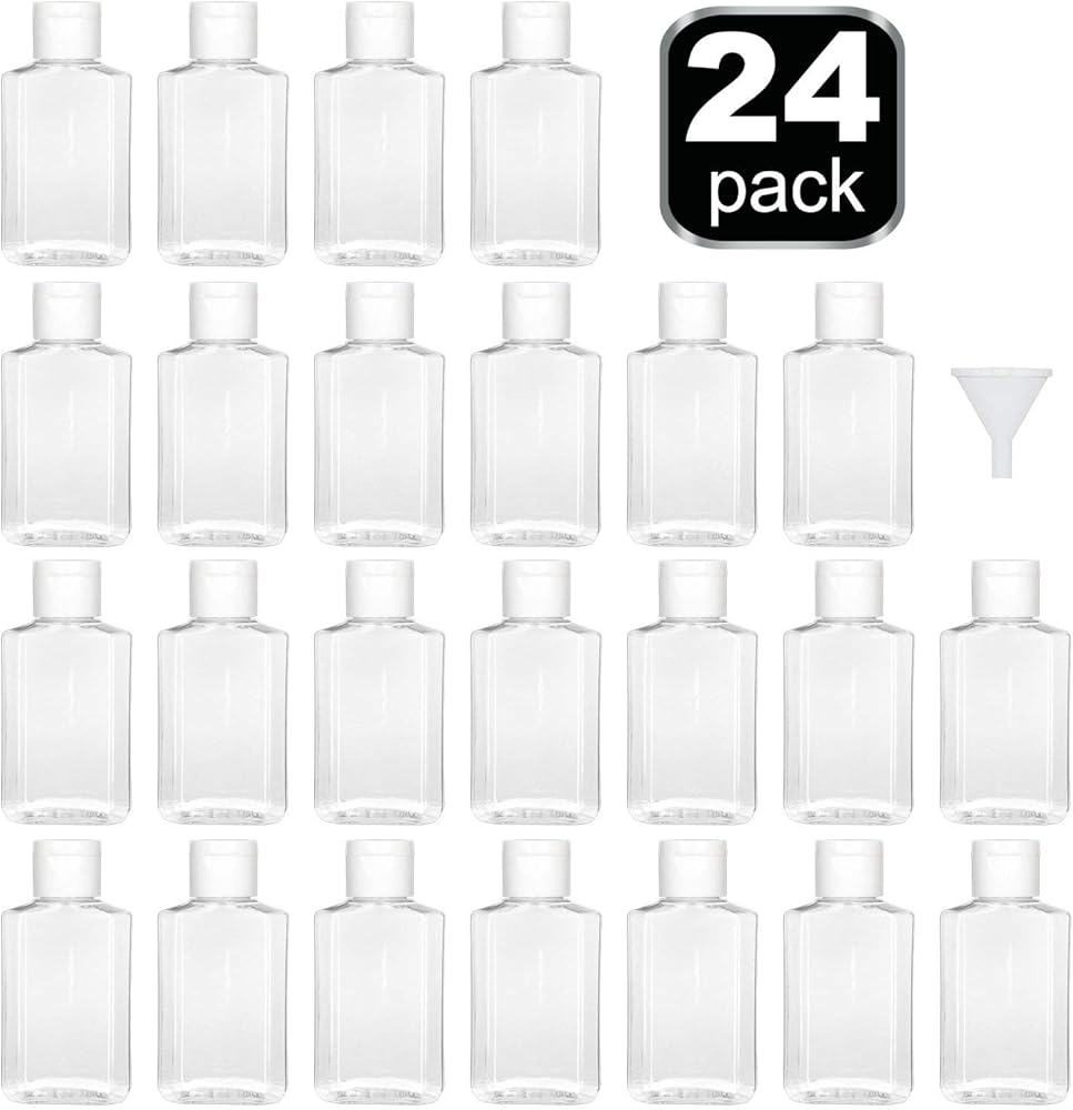 24 قطعة من حاويات السفر: هذه المجموعة المكونة من 24 زجاجة معقم لليدين فارغة تأتي مع قمع مجاني يمكن أن تساعدك على ملء السائل بسهولة. يبلغ ارتفاع الزجاجات البلاستيكية الصغيرة 2oz 3.6 سم فقط، وهي مريحة للحمل ومعتمدة من إدارة أمن المواصلات الأمريكية. مثالية لرحلات العمل، والعطلات، والسفر، ومفضلات الزفاف.