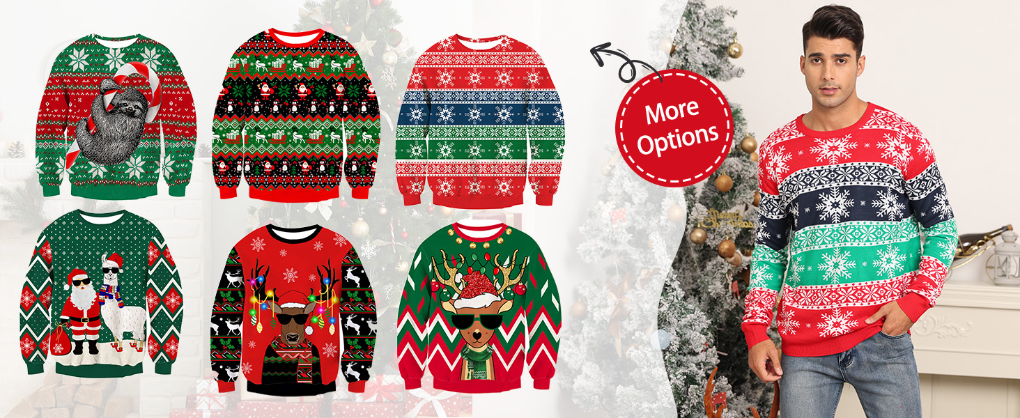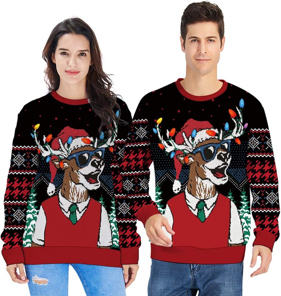Uideazone الرجال نساء سترات عيد الميلاد القبيحة Crewneck Xmas الحفلات الحفلات الحفلات للعام الجديد الاحتفالات بالعام الجديد