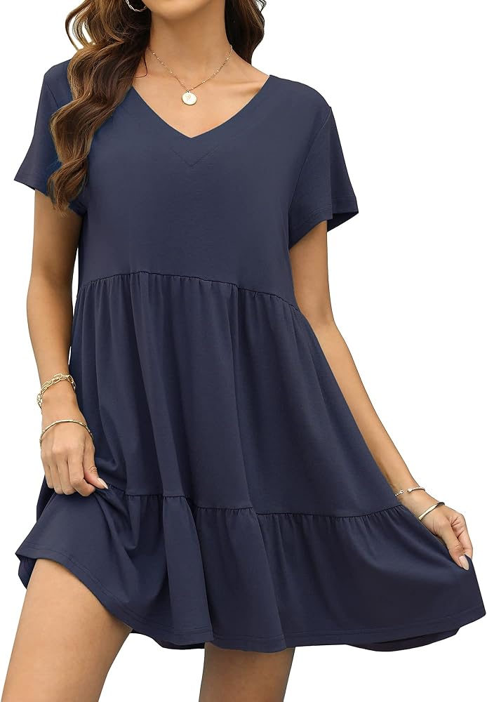 👑【التصميم】: فساتين الصيف لن تُرى من خلالها. الفستان القصير ملائم وقابل للتمدد عند الصدر ليناسب أي صدر. عندما ترفعين يدك، لن تظهر حمالة الصدر. الفساتين القصيرة اللطيفة متينة وسوف ترافقك خلال عدة فصلي الربيع والصيف.