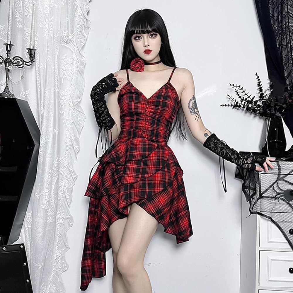 • المواد: فستان قوطي فاسق، فستان قصير منقوش، فساتين Emo alt. فستان لوليتا قوطي، فستان جمالي Y2k للشارع، فستان عالي الخصر على شكل حرف A مصنوع من نسيج بوليستر وقطن عالي الجودة، خفيف، مسامي، ناعم الملمس، مريح ليرتدي.
