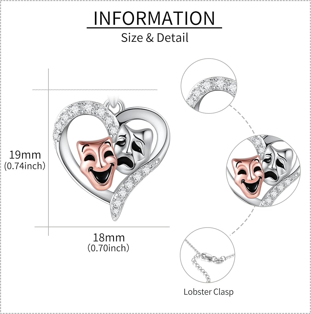 【مادة الفضة الإسترلينية】قلادة الأقنعة الكوميدية والمأساة مصنوعة من الفضة الإسترلينية 925، وخالية من الرصاص والنيكل، ولا تسبب الحساسية، ومضادة للحساسية. سلسلة القلادة أنيقة ولكنها متينة والفضة من الدرجة الأولى.