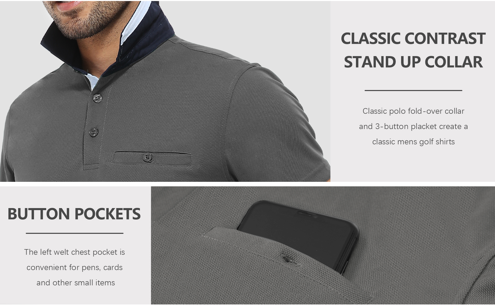 • 【ياقة واقفة】ياقة الدنيم الكلاسيكية تقف بشكل لطيف ومستقيم، وتخلق الفتحة ذات الأزرار الثلاثة مظهرًا كلاسيكيًا لقميص بولو بأكمام طويلة للرجال، بينما تمنع هذه الياقة المتقدمة التجعيد بعد كل غسلة، وأساور أكمام قابلة للتمدد تتوقف عند المعصم.