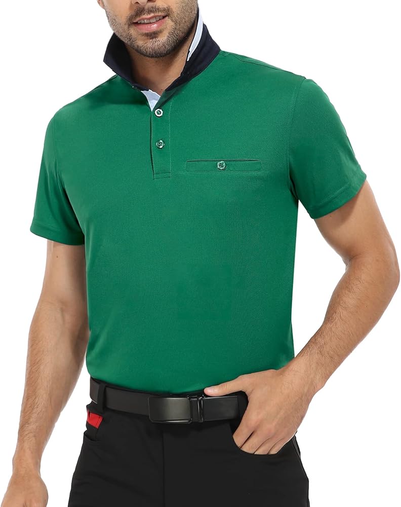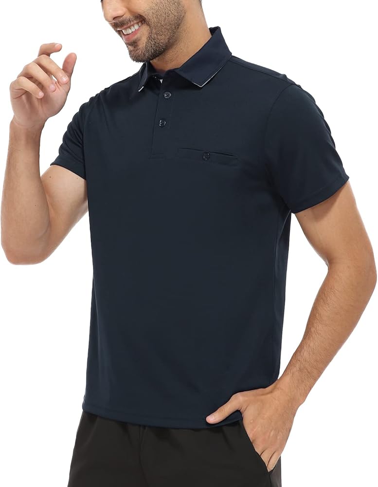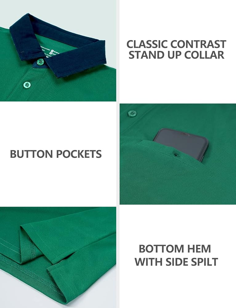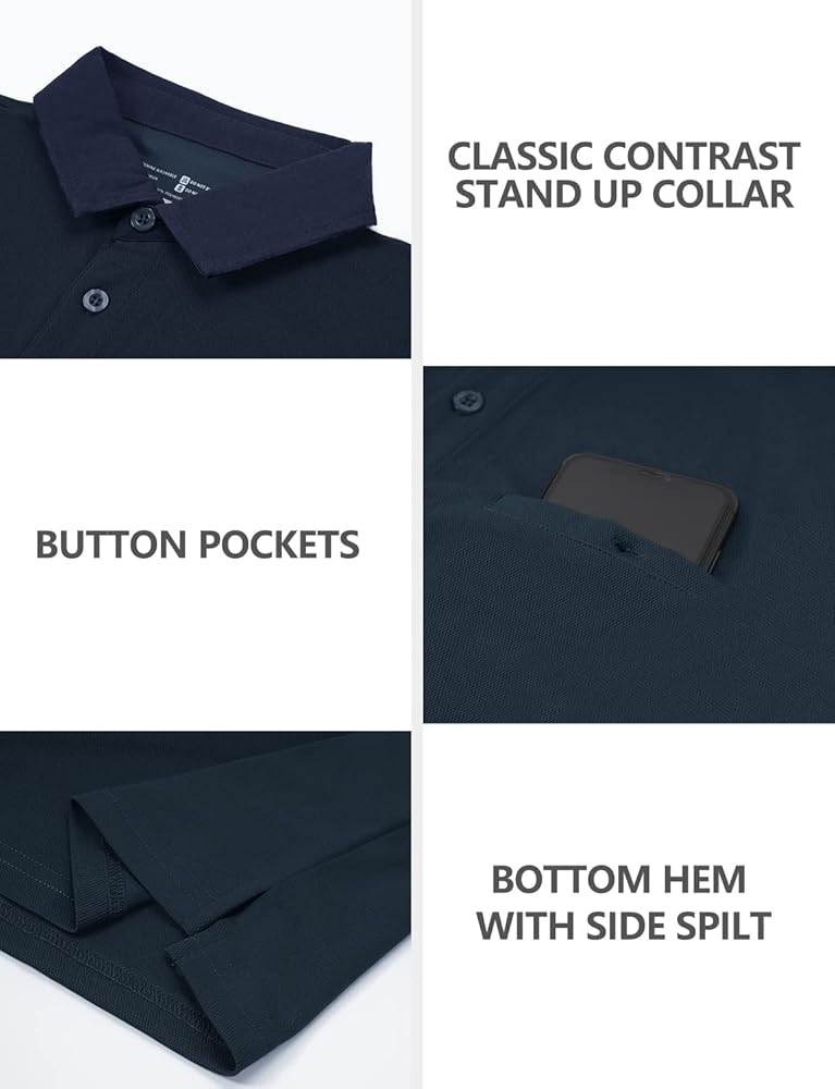 قمصان بولو Hiverlay للرجال قميص جولف بياقة بأكمام طويلة وقصيرة مع جيب بعامل حماية من الأشعة فوق البنفسجية 50+ أداء عمل سريع الجفاف