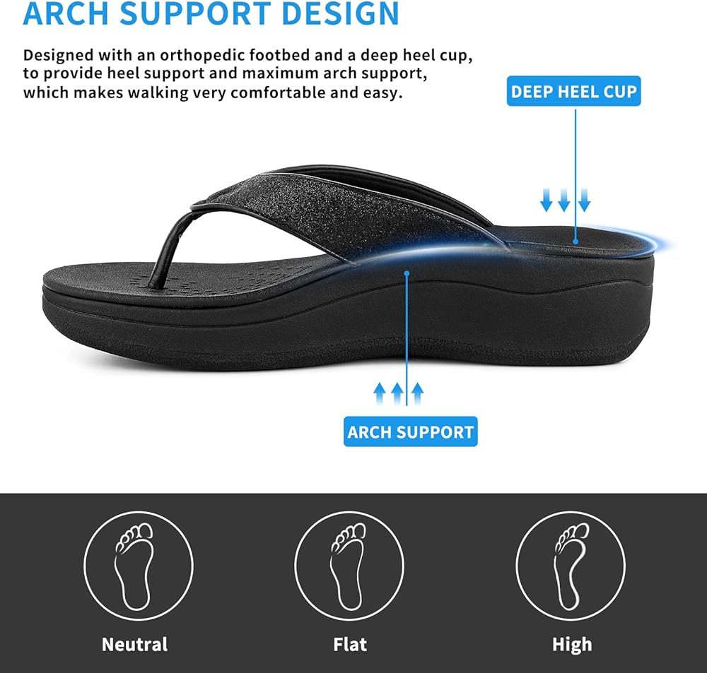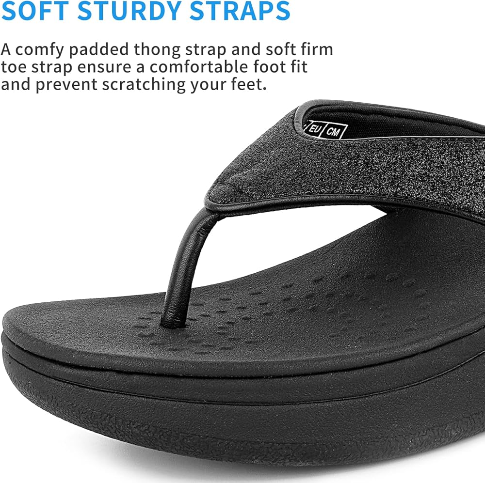ERGOfoot منصة فليب فلوب للنساء مع دعم للقوس، شباشب لتقويم العظام للنساء، صنادل لالتهاب اللفافة الأخمصية للقدم المسطحة، صنادل مريحة بنمط ثونغ
