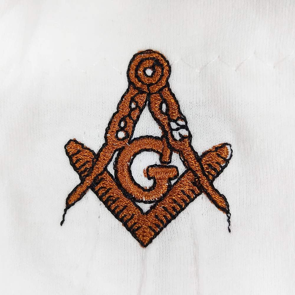 قفازات ماسونية قطنية مربعة ذهبية وبوصلة مطرزة