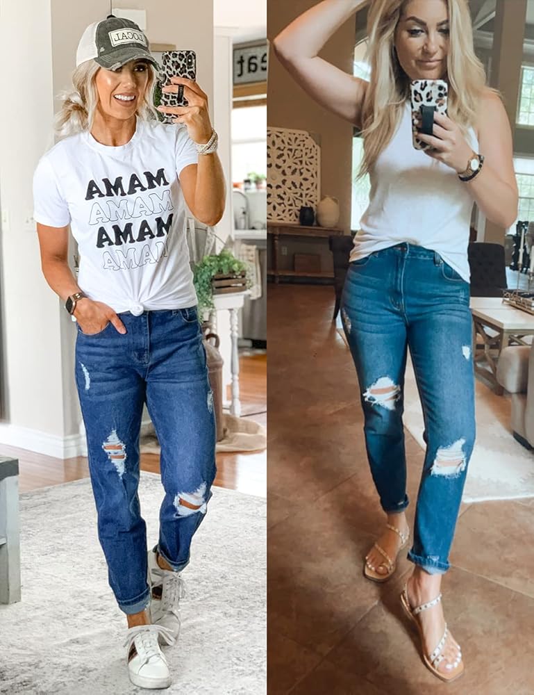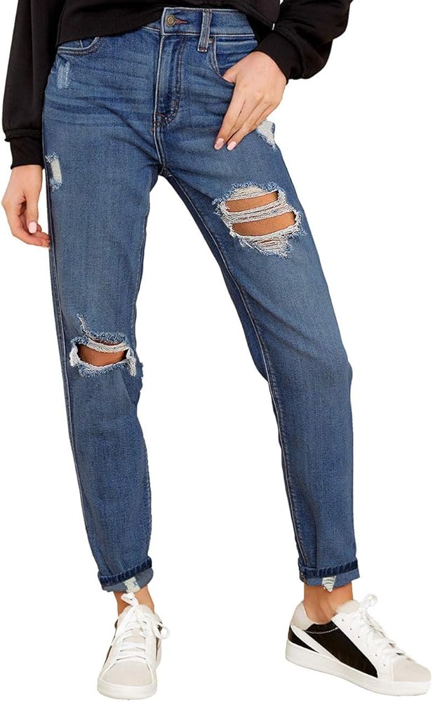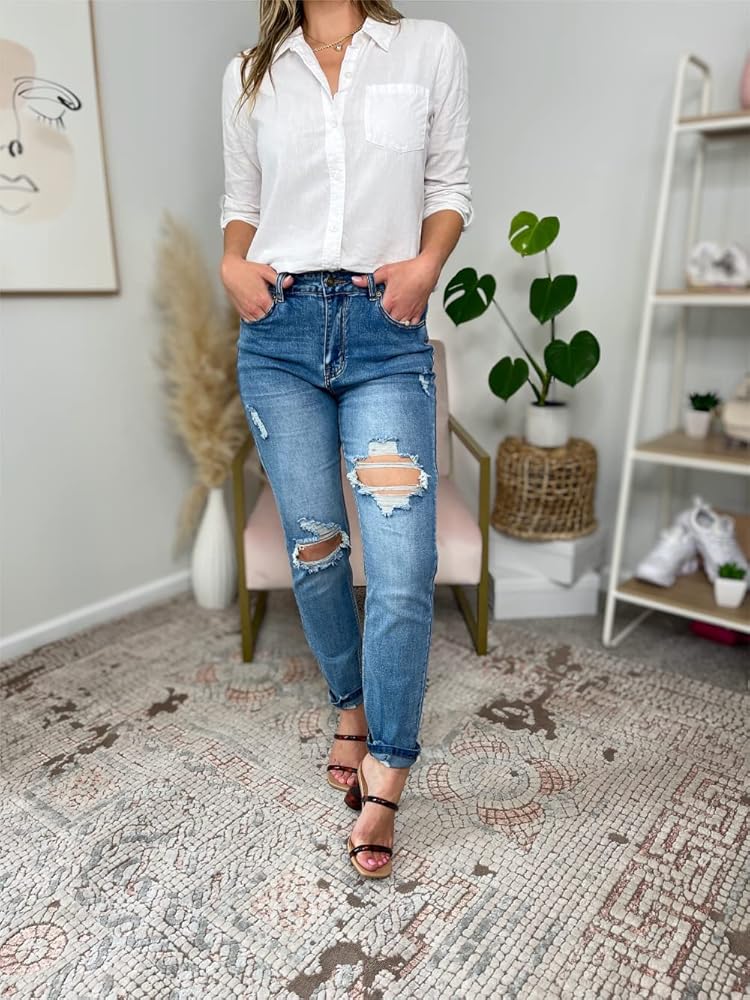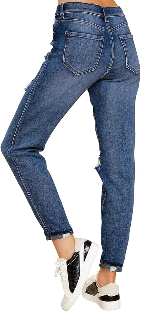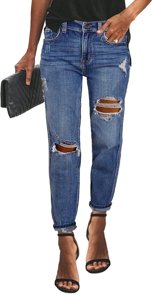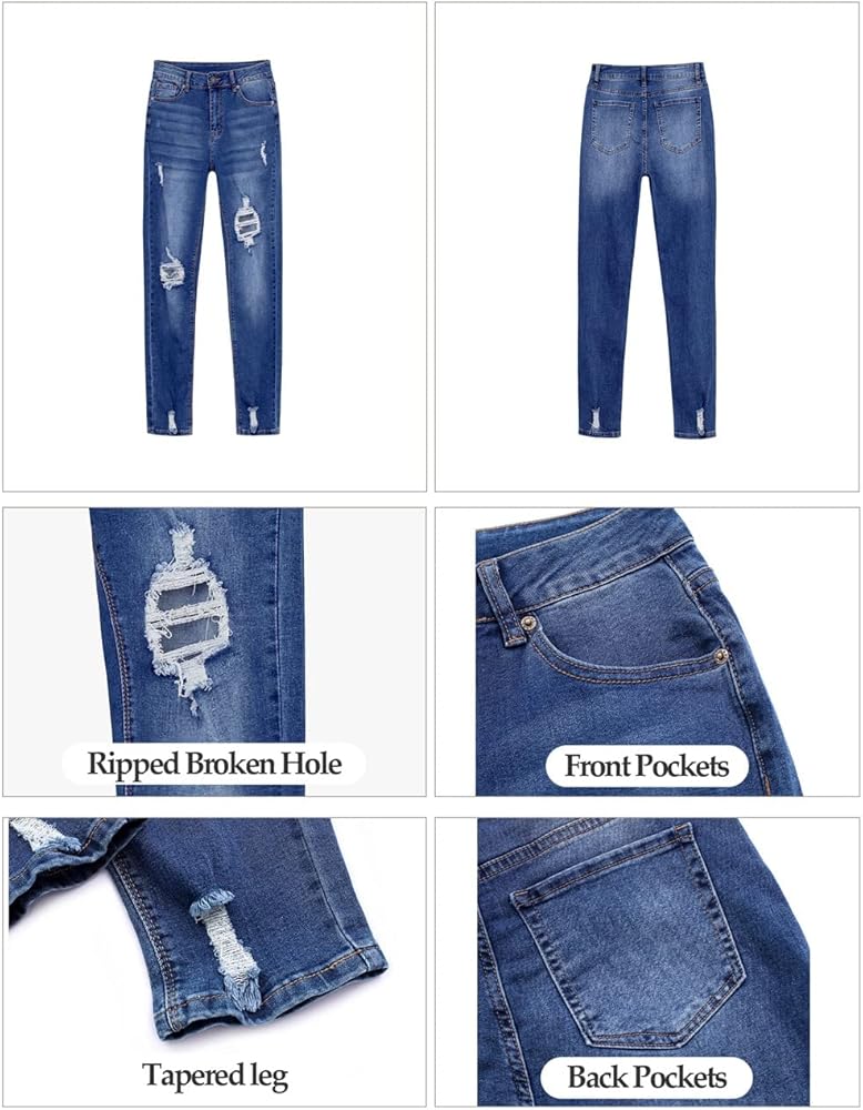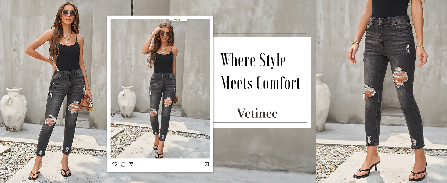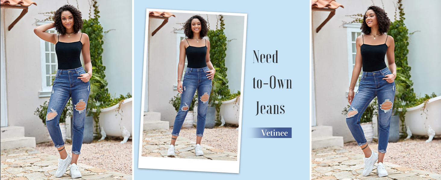 بنطلون جينز Vetinee نسائي مرتفع الارتفاع مدمر ومغسول من قماش الدنيم الممزق