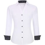 السمات: استنادًا إلى مقاس القميص النسائي الأمريكي بأزرار سفلية، فهو يناسب المقاس المضبوط. ياقة واسعة، رقبة على شكل حرف V، تم تحديث النمط أيضًا مع تباين على الياقة الداخلية وأساور الأكمام لشعور راقي وعصري. يرجى الرجوع إلى تفاصيل جدول المقاسات الموجودة في الصور أو شراء مقاسك الطبيعي.