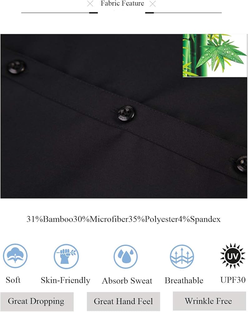 المواد: قمصان الفساتين النسائية لدينا مصنوعة من 31% خيزران، 30% ألياف دقيقة، 35% بوليستر، 4% ألياف لدنة، ألياف طبيعية، صديقة للبيئة، حماية من الأشعة فوق البنفسجية، عامل حماية من الأشعة فوق البنفسجية 30+، خالية من التجاعيد، ناعمة الملمس، مع سقوط رائع، مريحة في الارتداء .