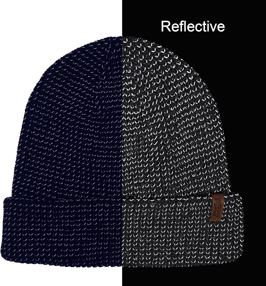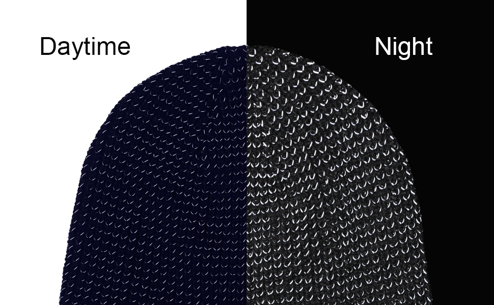 عاكس للغاية: خط عاكس محبوك في القبعة الكاملة، حماية 360 درجة، سيضيء الخيط العاكس عندما تتألق المصابيح الأمامية للسيارات أو أضواء الشوارع عليها، مما يضمن السلامة أثناء المشي في الصباح الباكر، أو الجري في الليل أو التدريبات في وقت متأخر بعد الظهر، أو المشي في العشاء.