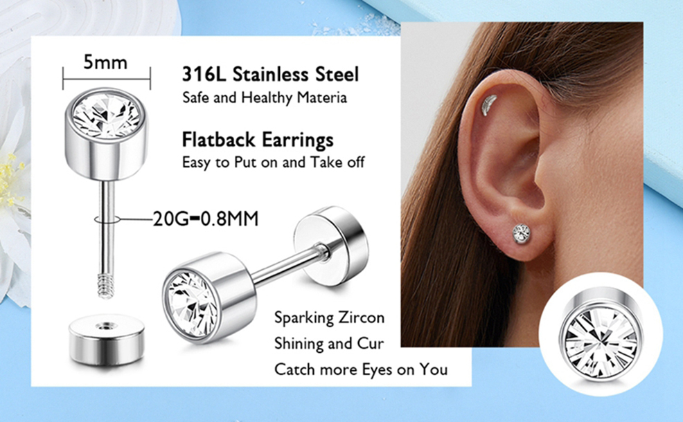 【حلق مسمار لا يسبب الحساسية】مصنوع من الفولاذ الجراحي، لا يسبب الحساسية، صديق لبشرتك الحساسة، قوي ومتين، مضاد للصدأ والبهتان، سطح أملس لأقراط الغضروف، مريح جدًا في الارتداء، تصميم خلفي لولبي، لن يخدش بشرتك الناعمة، يمكن يمكن ارتداؤها 24/7!