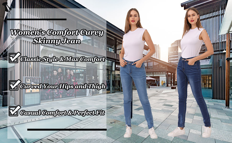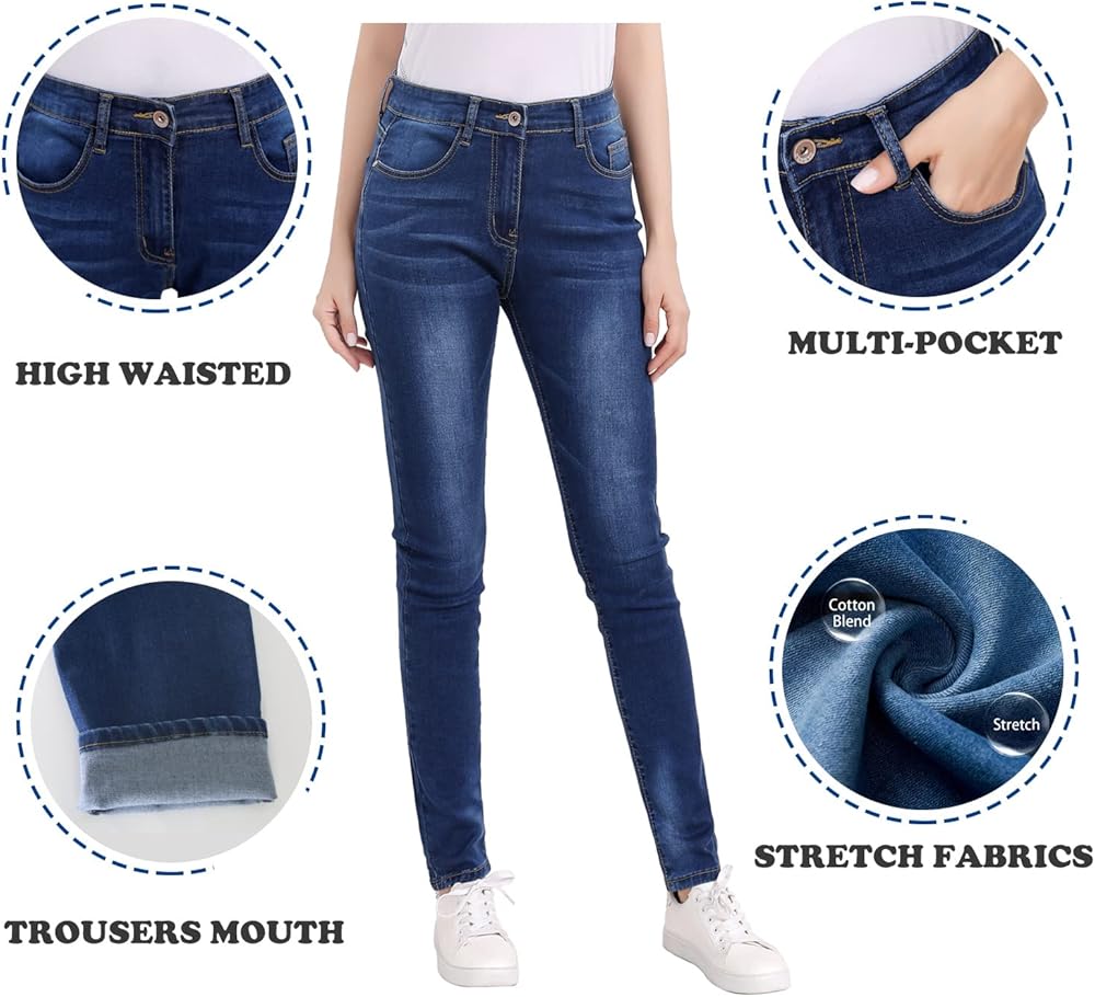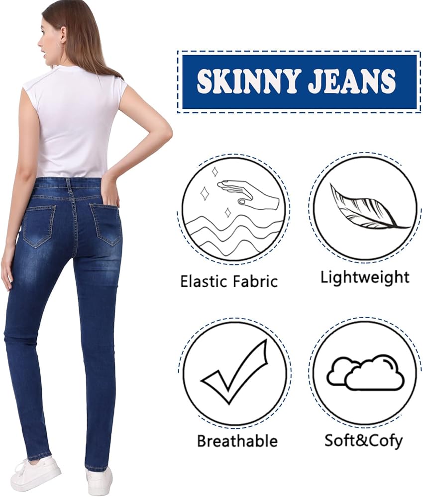 ♔ نسيج دينم مطاطي: هذا الجينز المطاطي للسيدات مصنوع من نسيج قطن الدنيم جيد التهوية، وثبات اللون، وخفيف الوزن، ومطاط، ومريح ومتين. جينز سكيني عالي الخصر لدينا مع دعم أفضل وخصر أكثر راحة. لا داعي للقلق بشأن الجلوس في وضع القرفصاء طوال اليوم، لأن الجينز الضيق القابل للتمدد يتحرك معك.