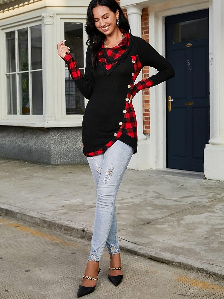 المزايا: نسيج محبوك ناعم، عالي المرونة ومريح، أكثر سمكًا قليلاً من التي شيرت العادي، سويت شيرت تونيك طويل الأكمام (بدون جيب)، قميص رقبة على شكل بقرة، حاشية غير متماثلة، بلوزة قميص تونيك رفيعة بألوان متعددة تجعلك أنيقة وجذابة ومريحة