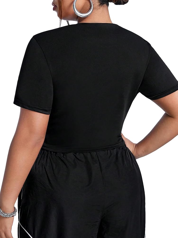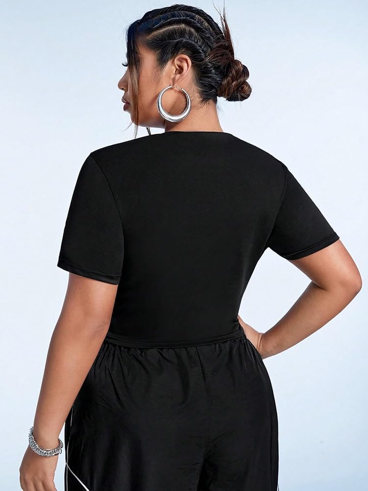 • يتميز هذا التي شيرت القصير بأكمام قصيرة، ورقبة دائرية، وطباعة جرافيك، ومقاس نحيف، ويشكل منحنياتك بشكل أفضل