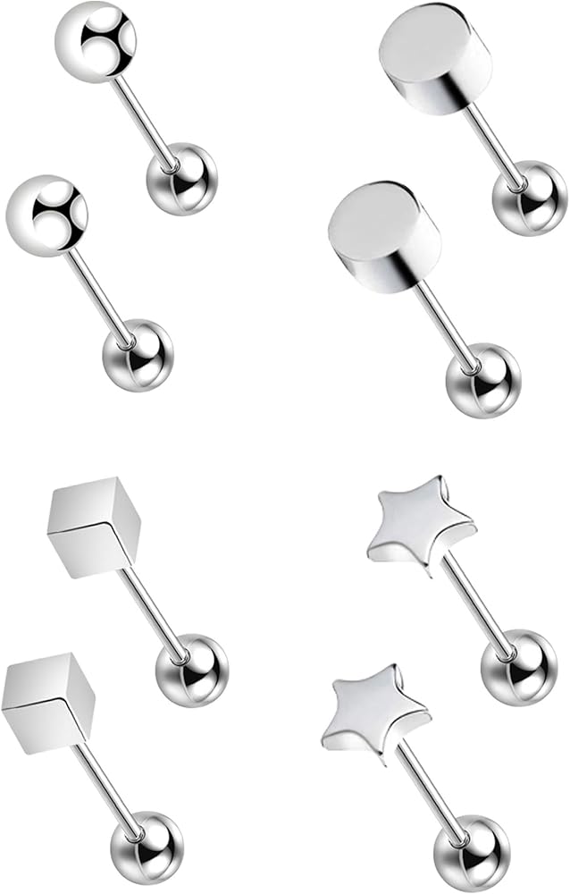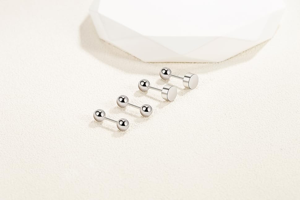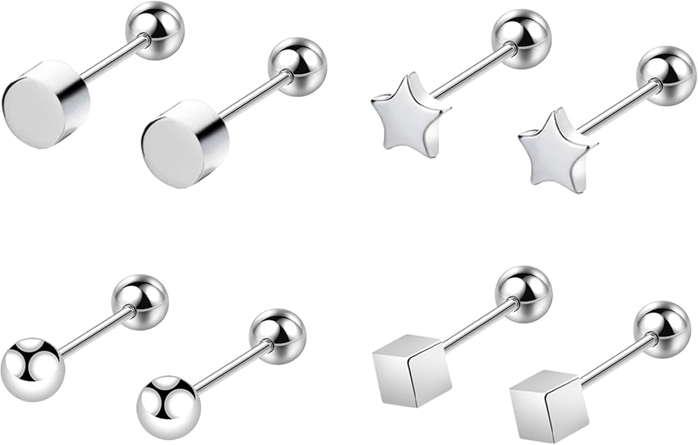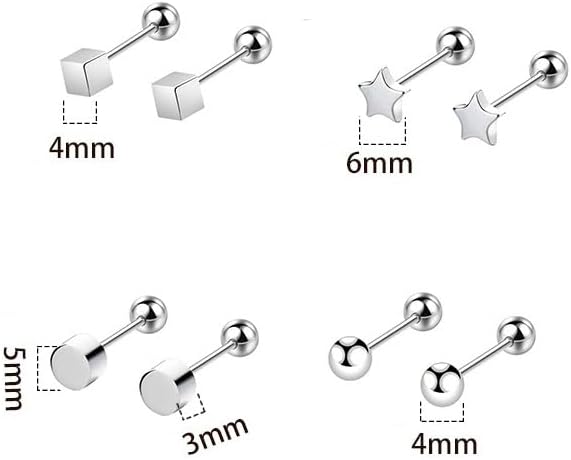حجم الأقراط الفضية: 4 مم - 6 مم، الحجم القياسي، يناسب معظم المراهقين والبالغين. اختيار قوي للأشخاص الذين لديهم العديد من ثقوب الأذن.