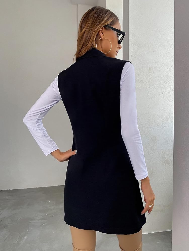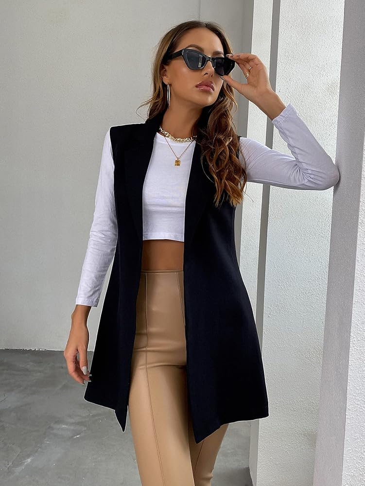 سترة بليزر نسائية مفتوحة من الأمام بدون أكمام وياقة على شكل طية صدر من Verdusa