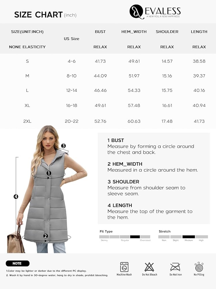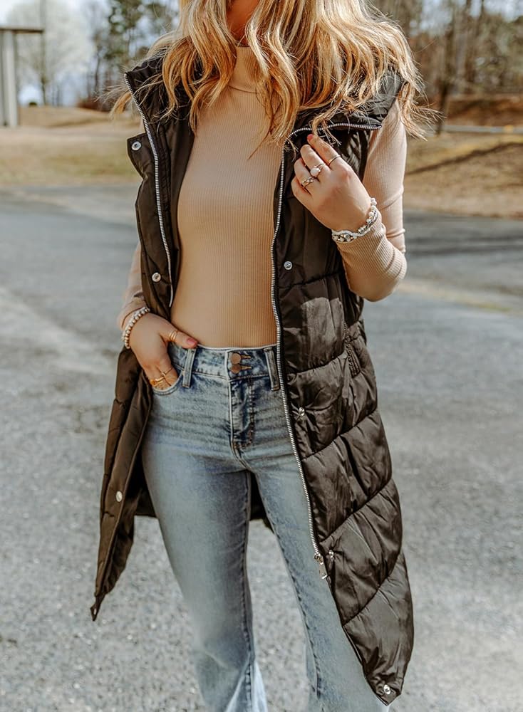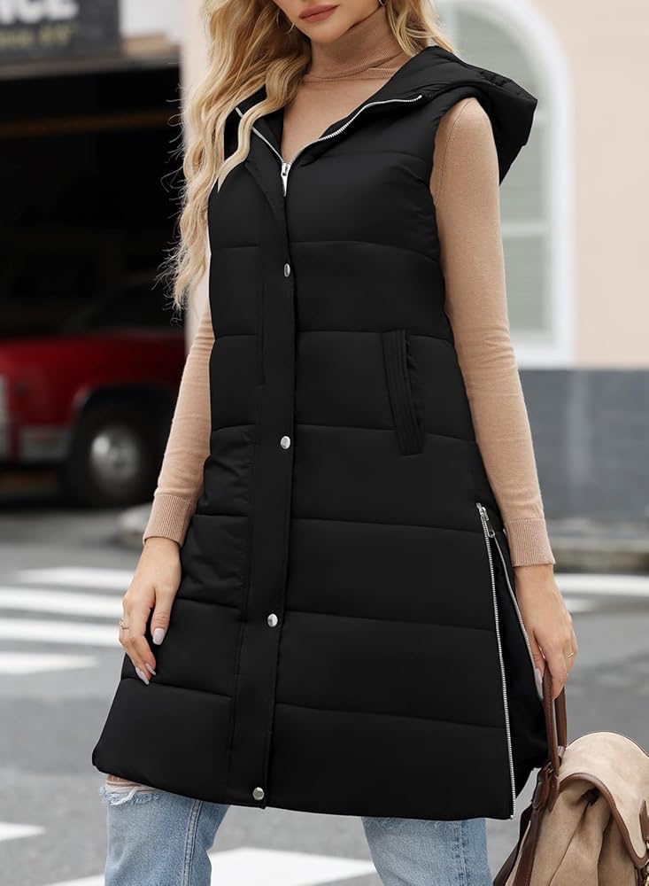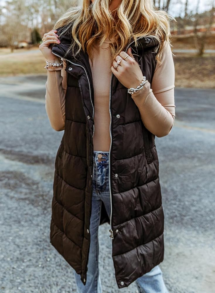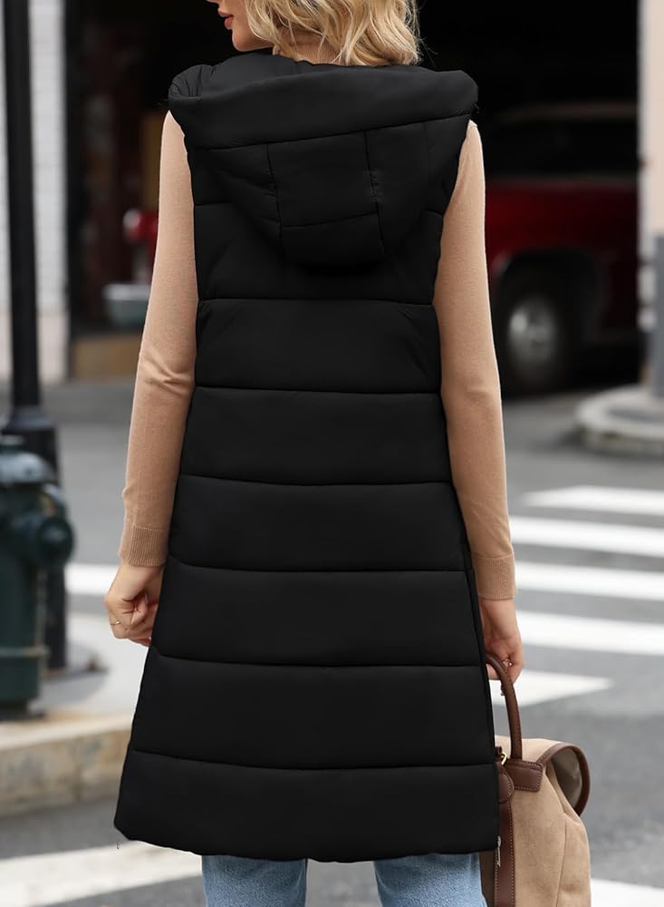 سترة منتفخة طويلة للنساء من EVALESS مبطنة بقلنسوة بدون أكمام مع سحاب للأسفل سترة شتوية دافئة خفيفة الوزن معطف جيليه ملابس خارجية