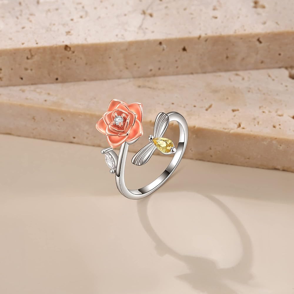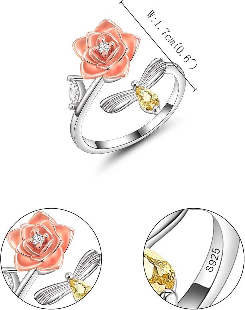 التصميم: الخاتم النسائي له 3 تصميمات للاختيار من بينها، ندفة الثلج، عباد الشمس، الورد. يمكن أن يتناسب مع العديد من أنماط الملابس.