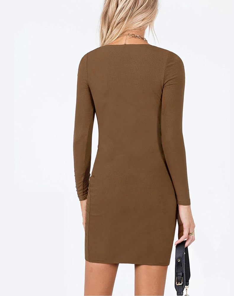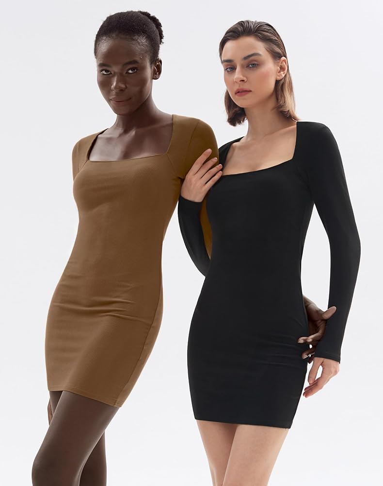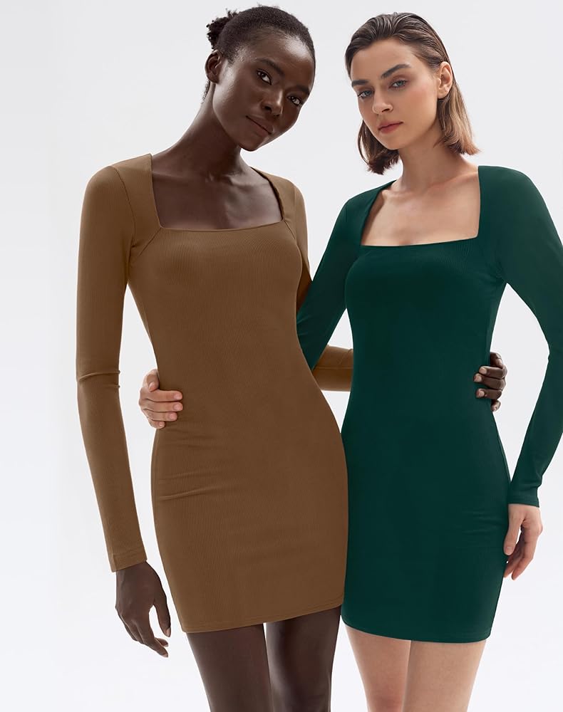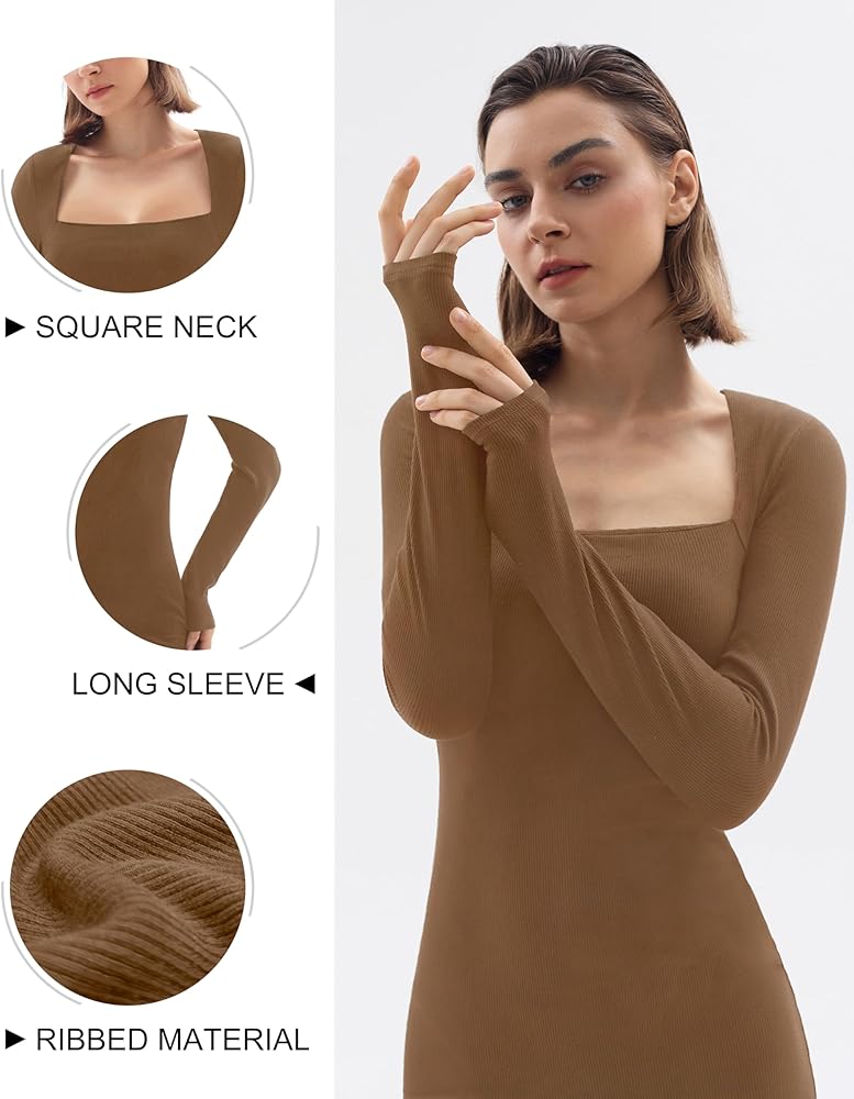 تصميم فستان قصير أنيق: يتميز الفستان الضيق بخط رقبة مربع لإظهار الترقوة المثيرة، ويبدو جيدًا مع قلادة بسيطة. الأكمام الطويلة الأساسية المجهزة تجعل من السهل تنسيق فستان النادي هذا مع معطف في الشتاء. الفستان الذي يصل إلى الركبة جذاب للغاية ويمكن أن يكون متطابقًا تمامًا مع أحذية الكاحل/الأحذية الطويلة/الكعب العالي. مثالي للارتداء اليومي والاسترخاء وعطلات الشاطئ وشهر العسل والمزيد.