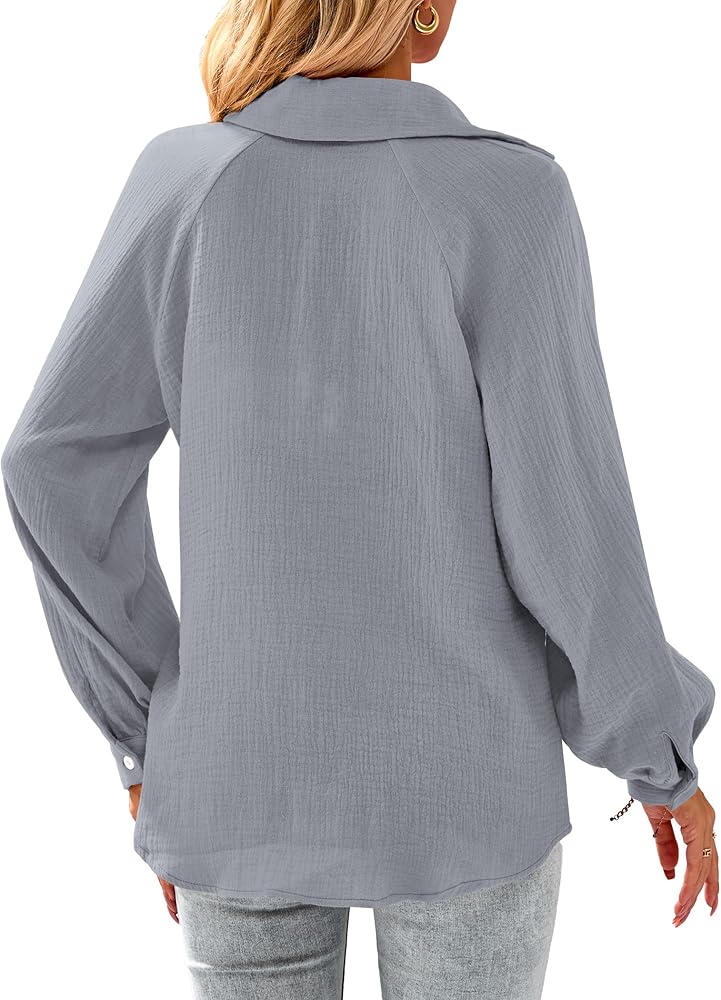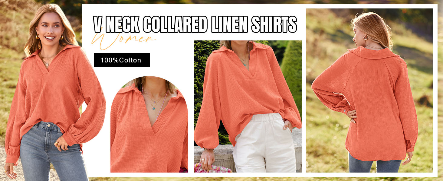 • تصميم فريد من نوعه: بلايز بأكمام طويلة للنساء/بلوزة برقبة على شكل حرف V للنساء/قمصان بياقة للنساء/بلوزة سادة للنساء/بلايز تونيك للنساء فضفاضة/بلايز خريفية للنساء/بلوزة كاجوال للعمل للنساء/بلوزة كتان للنساء/بلايز سادة للنساء/بلوزة للنساء، قمصان كاجوال/للخروج للنساء/قمصان خفيفة الوزن للنساء