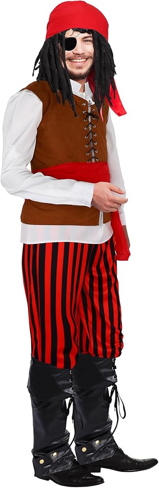 تشمل العبوة: سوف تحصل على 6 قطع من رقع عين القرصان، وقطعة واحدة من قميص القرصان طويل الأكمام، وقطعة واحدة من زي السترة البنية، وقطعة واحدة من بنطلون زي القرصان، وقطعة واحدة من عصابة رأس القرصان، وقطعة واحدة من وشاح القراصنة الرجالي، وزوج واحد من أحذية القرصان، مزيج جميل لدعم احتياجات تزيين حفلتك