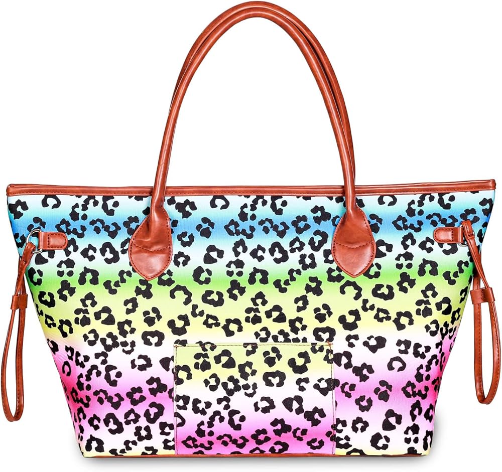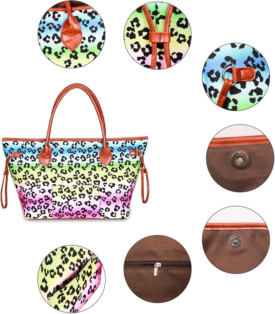 • ❤هيكل مثالي: تتميز هذه الحقيبة القماشية متعددة الألوان بتصميم خالٍ من السحاب وأزرار كبس مغناطيسية لسهولة استيعاب الأشياء الكبيرة، مع زخرفة من الجلد الصناعي ورباط على كلا الجانبين، و4 مسامير معدنية في الأسفل. أنابيب ومقابض PU