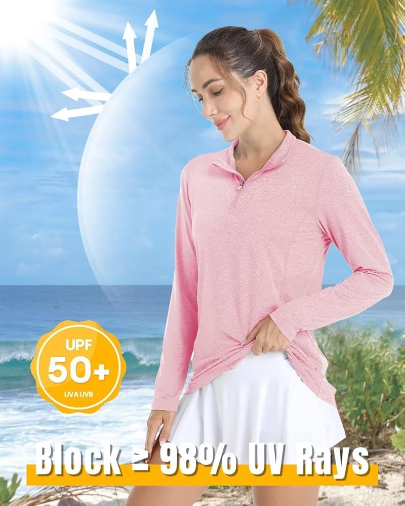 Boladeci UPF 50+ قمصان طويلة الأكمام للنساء ربع الرمز البريدي حماية من الأشعة فوق البنفسجية مقاومة للتجاعيد سريعة الجفاف لصيد الأسماك والسباحة والطفح الجلدي تي شيرت