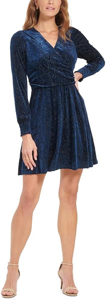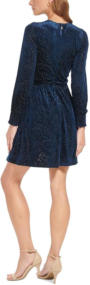 هذا الفستان النسائي من Tommy Hilfiger ذو المقاس المناسب والمتوهج هو عبارة عن أكمام طويلة مخملية بطول الركبة