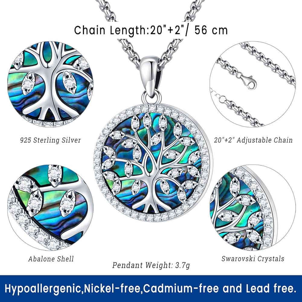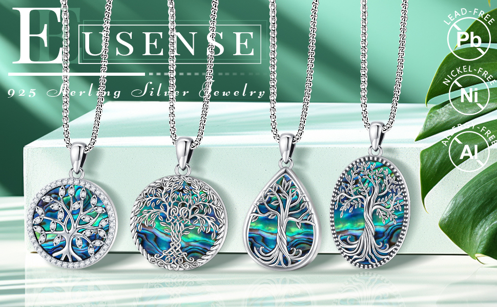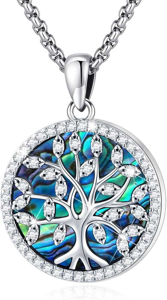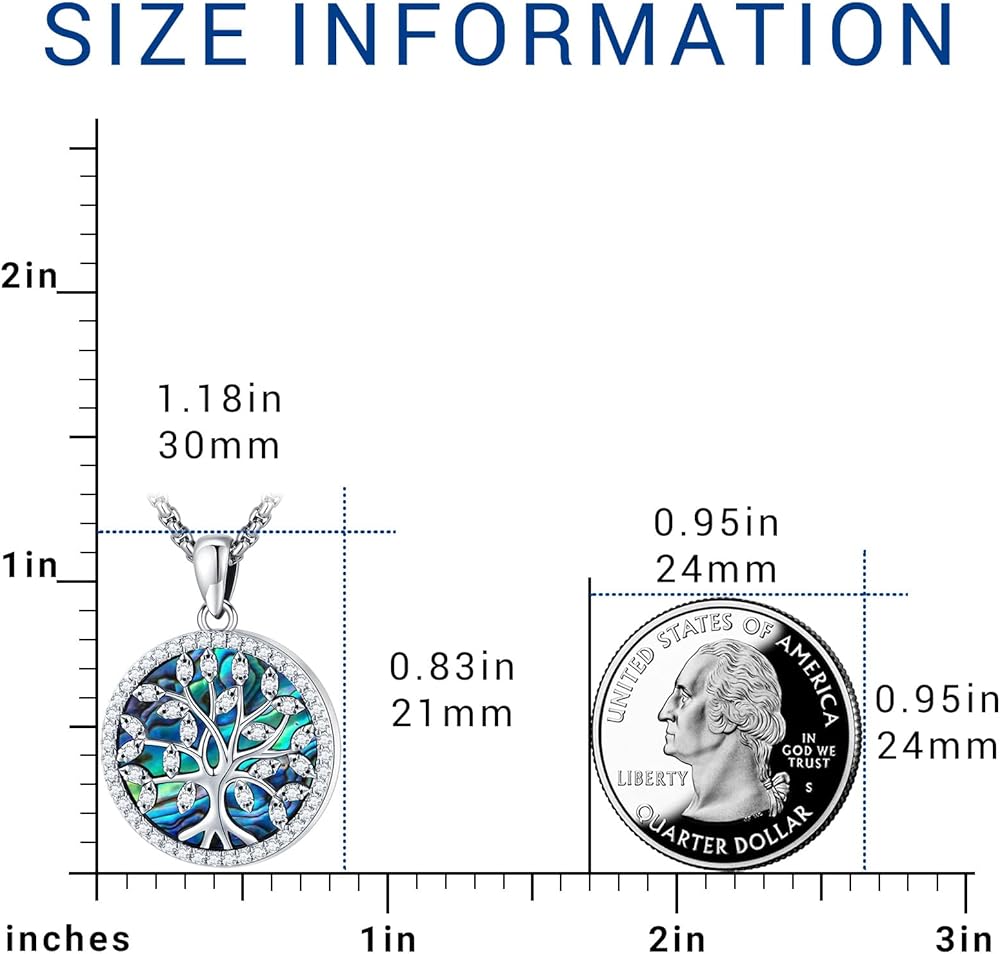 قلادة Eusense أذن البحر من الفضة الإسترليني 925 قلادة شجرة الحياة للنساء مجوهرات أذن البحر قلادة أذن البحر الطبيعية قلادة شجرة الحياة المستديرة مجوهرات حجر الراين زركون مكعب
