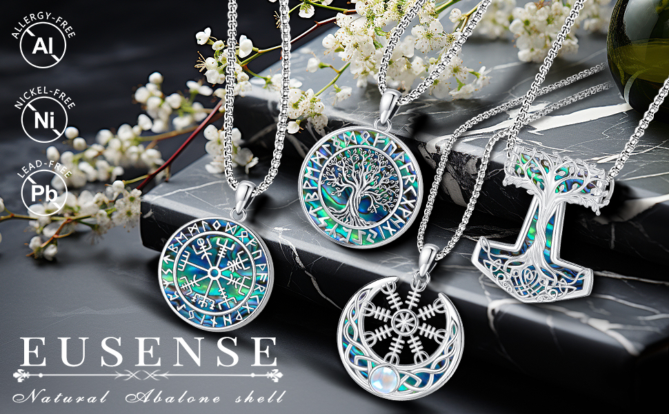 The locket pendant is made of genuine 925 sterling silver and is set with beautiful natural abalone shells. Hand crafted. Each piece has a unique grain pattern, and the abalone shells exhibit stunning luster under different lighting conditions.