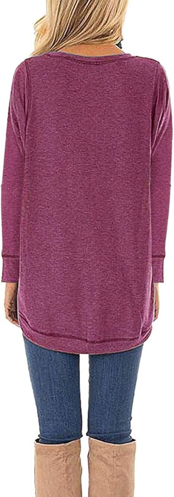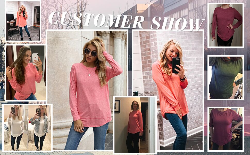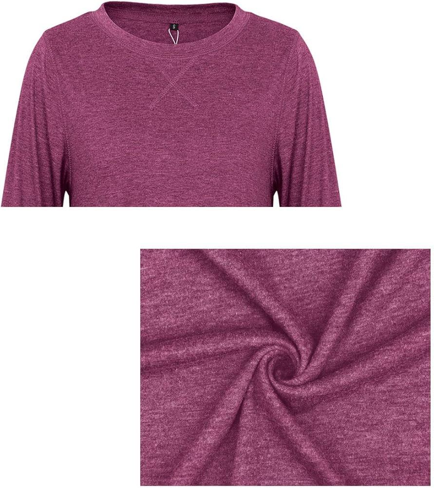 - تصميم كاجوال فضفاض، أكمام طويلة، رقبة دائرية، لون موحد، فتحة جانبية، بلوزة طويلة قصيرة من الخلف
