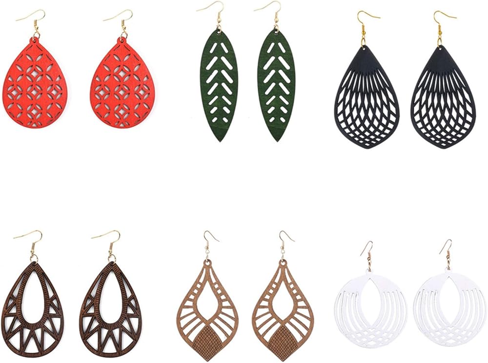 2-6 أزواج من الأقراط المتدلية الخشبية العرقية البوهيمية الخشبية المجوفة الأفريقية مجموعات الأقراط المتدلية خريطة أفريقيا والفيلة الأفريقية والأحمر والأصفر والأخضر الألوان الأفريقية خفيفة الوزن على الطراز الأفريقي أقراط خشبية على شكل خطاف على شكل دمعة أقرا