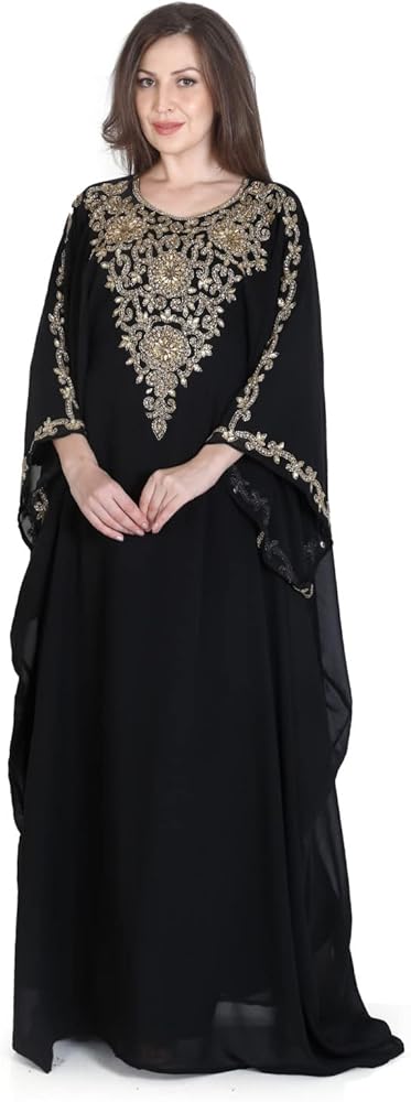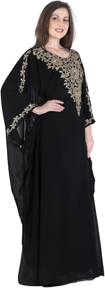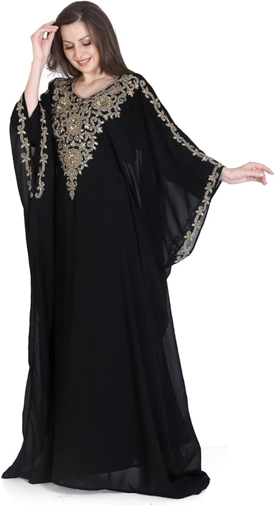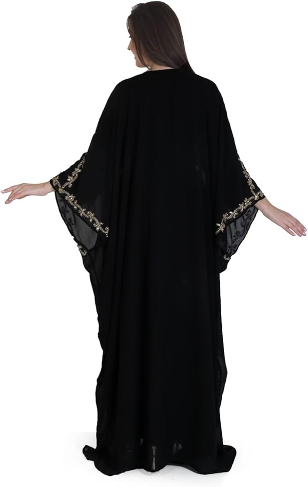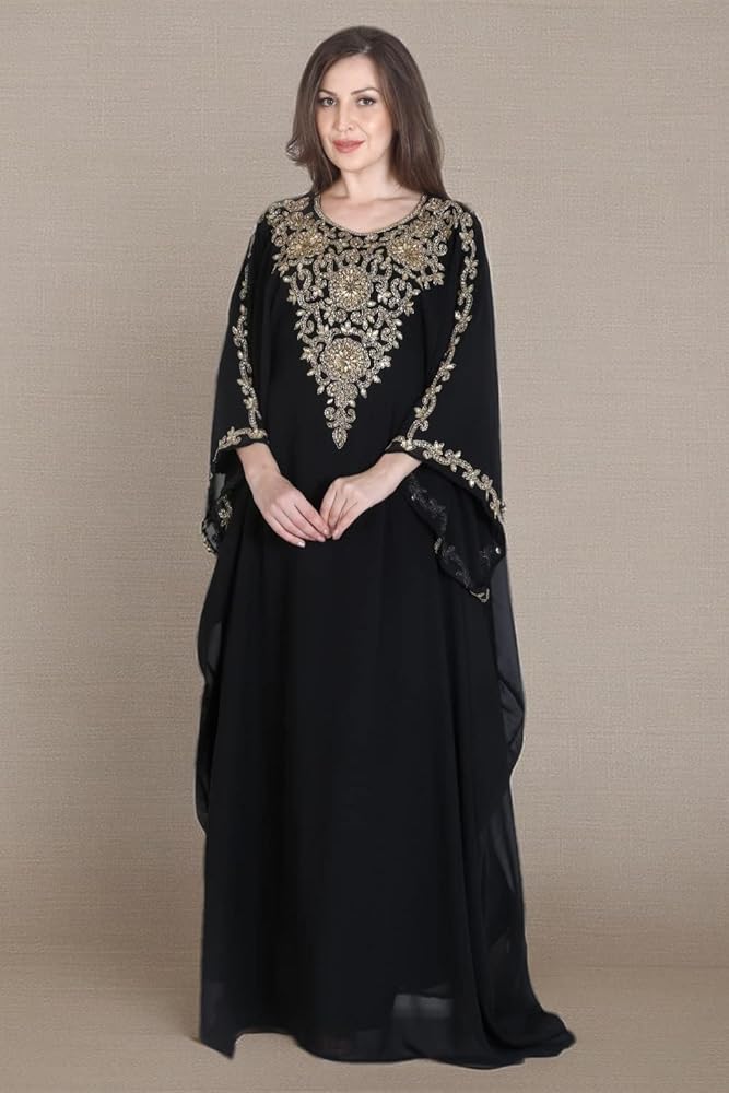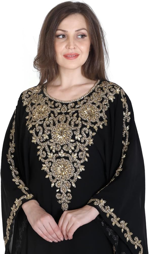 قفطان ANIIQ هو قفطان جورجيت أنيق مزين بديكور جميل من الكريستال والخرز. مطرز ومزخرف يدويًا، حجر الراين المقلد، الخرز، الزردوسي، الزاري إلخ.