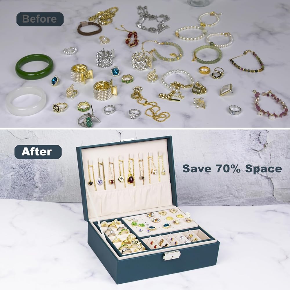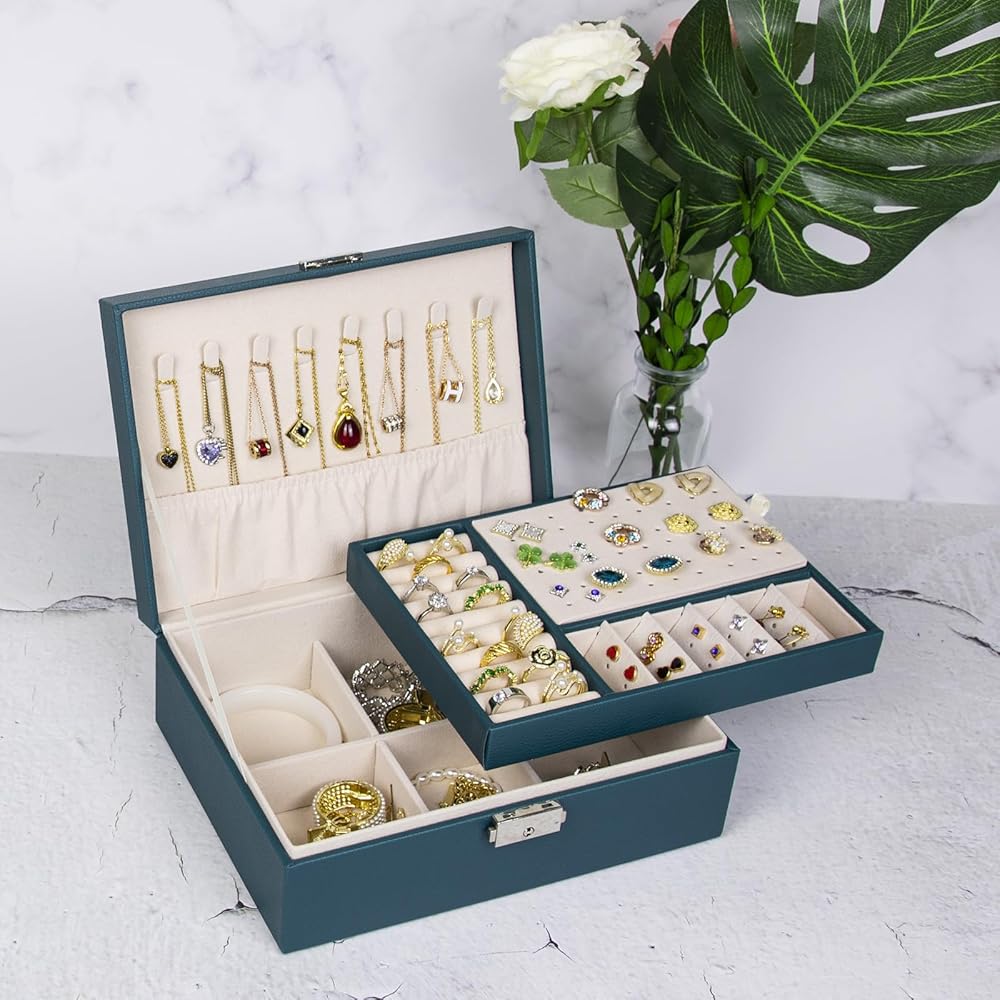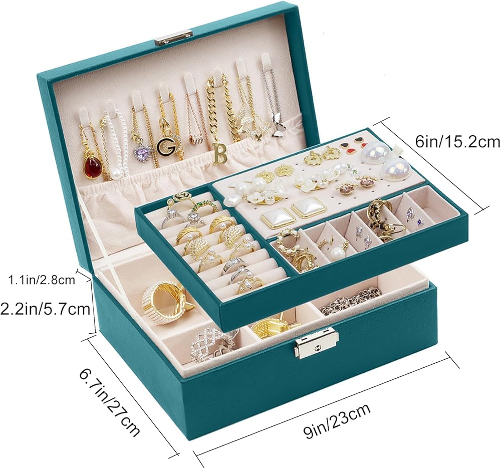- 【منظم صندوق مجوهرات بسعة كبيرة】【حافظة مجوهرات مزدوجة الطبقات】【منظم مجوهرات من جلد البولي يوريثين】【منظم مجوهرات متعدد الوظائف】【هدية مثالية】【حافظة تخزين مجوهرات كبيرة من طبقتين】
