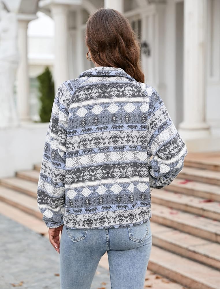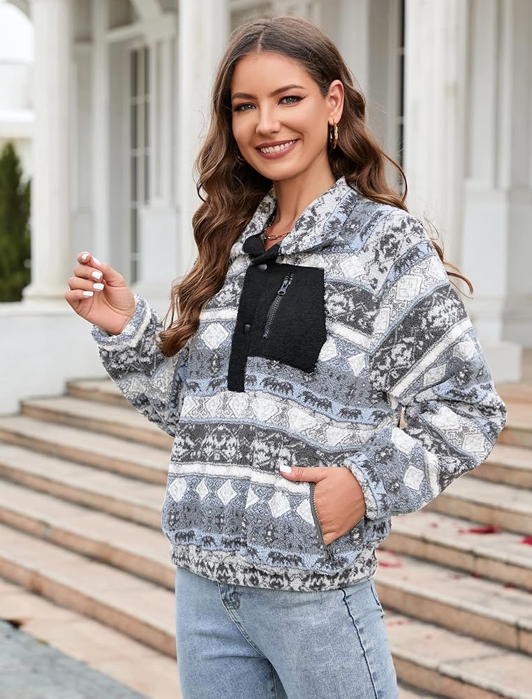 المواد: هذه السترة القصيرة ذات الرقبة القمعية للنساء مصنوعة من نسيج الصوف الغامض الذي يمنحك شعورًا رائعًا على الجلد. تتميز هذه السترة اللطيفة من الأزتيك بأنها ناعمة ومريحة في الارتداء، وتبقيك دافئًا وعصريًا.