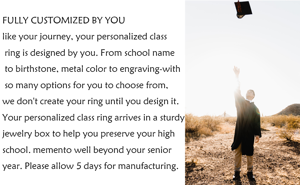 【Unique & Valuable】: This ring is desined by Ccjcinata with personalized body apperance,there is a lot vacancy custom made area could show your Class honor and commemorate story.From School Name,birthstone to image symbol,each part of the ring all could presented as a Unique and personalized class souvenir.
