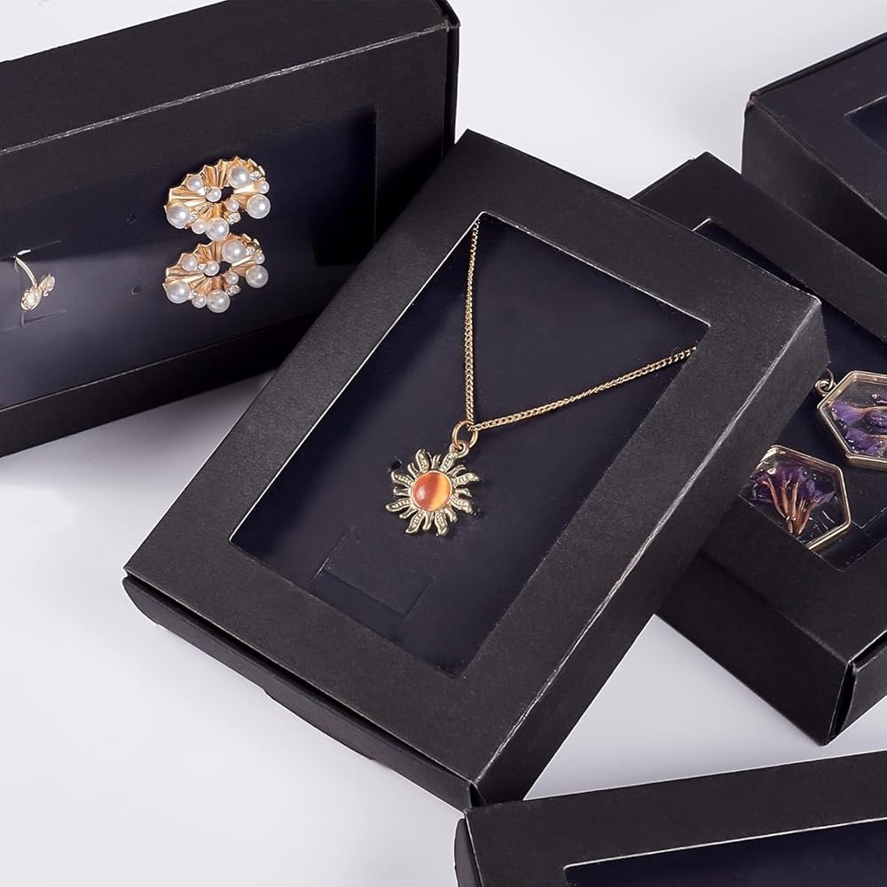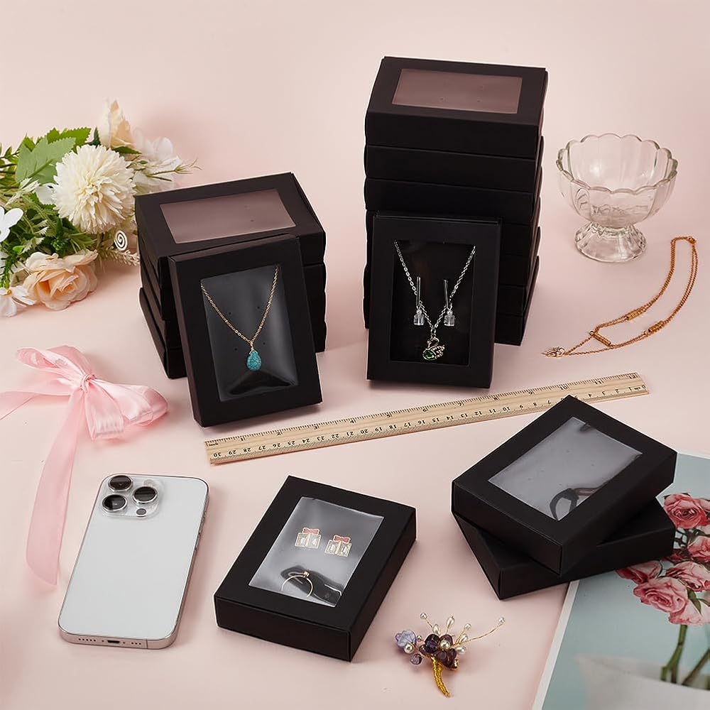 【تصميم فريد】: كل صندوق عرض مجوهرات يتكون من غطاء درج، وقاعدة درج، والورق المقوى لحمل المجوهرات. مصممة بنافذة شفافة في الجزء العلوي من الصندوق، يمكنك بسهولة رؤية محتويات الصندوق وعرض مجوهراتك أو قلادتك.