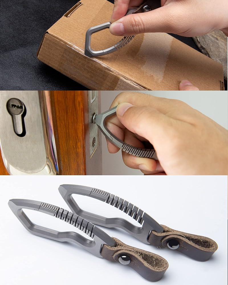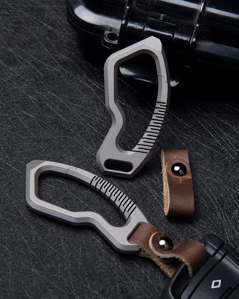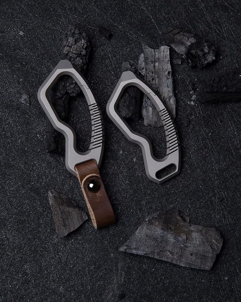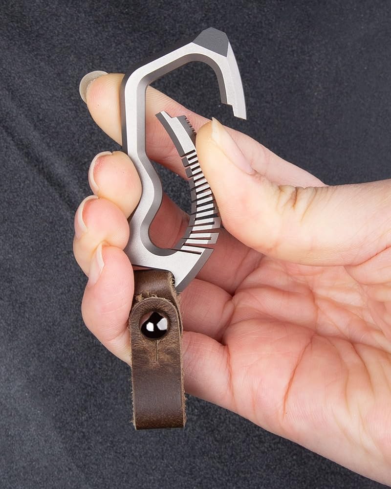 【خفيف الوزن ولكنه قوي】 الوزن الإجمالي 16 غرام، يجمع حامل حلقة المفاتيح متعدد الوظائف هذا بين مفك البراغي سهل التركيب بحلقة البنطال، أو حقيبة الظهر، أو وضعه في الجيب. 【زنبرك من قطعة واحدة】سلسلة المفاتيح الحلقية للحزام مقطوعة بدقة من مادة خليط التيتانيوم TC4 المشكلة بشكل متكامل، ومشبك الزنبرك المكون من قطعة واحدة له تحكم جيد في الارتداد وليس من السهل تشويهه. تشغيل سهل وسريع بيد واحدة.