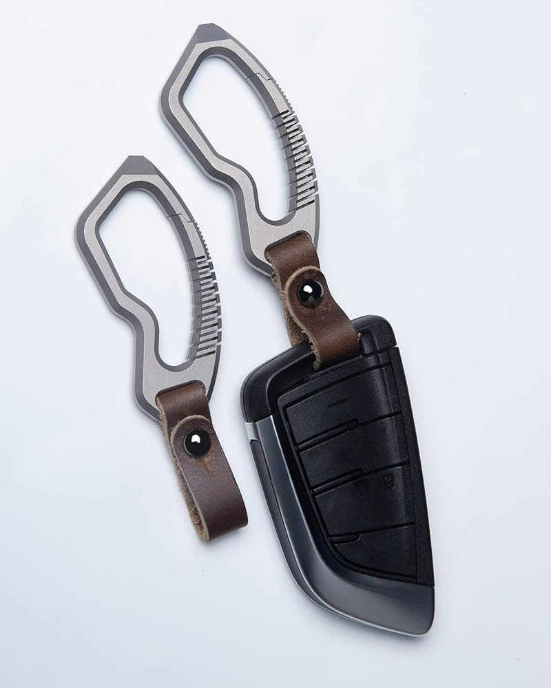 【قابل للفصل】 يأتي مشبك حلقة التثبيت تي اي مع حامل حلقي من الجلد بنسبة 100% لسهولة الفتح والإغلاق لفصل مفاتيح السيارة والمنزل والمكتب.
