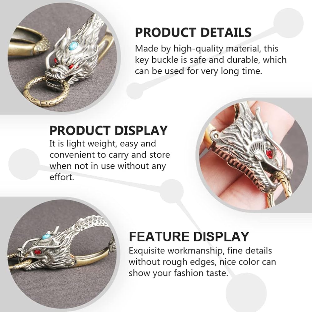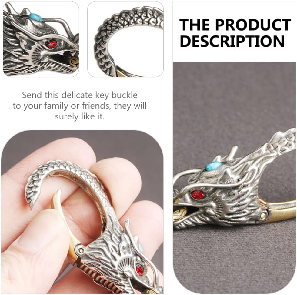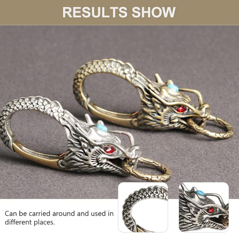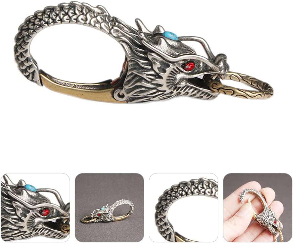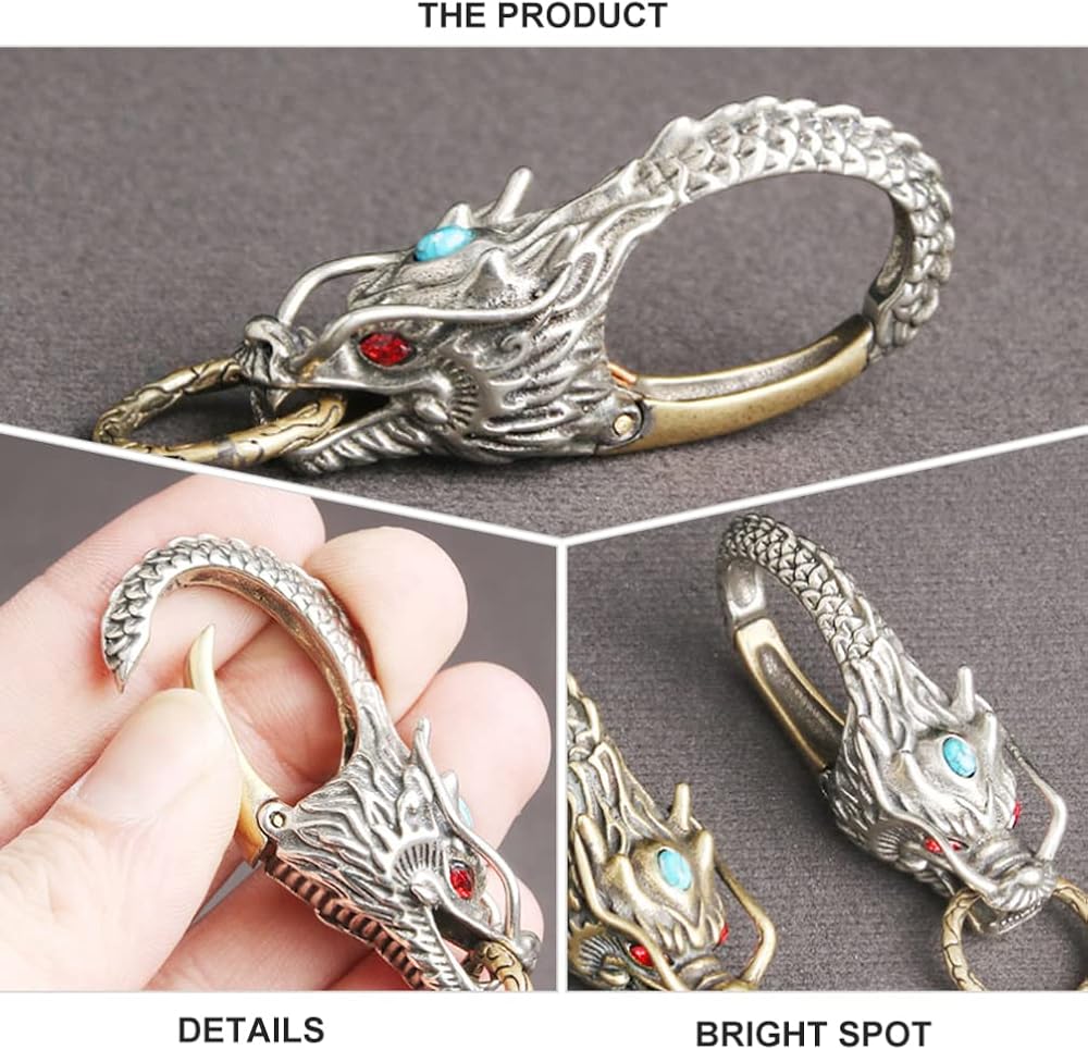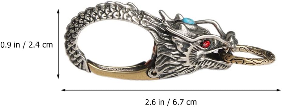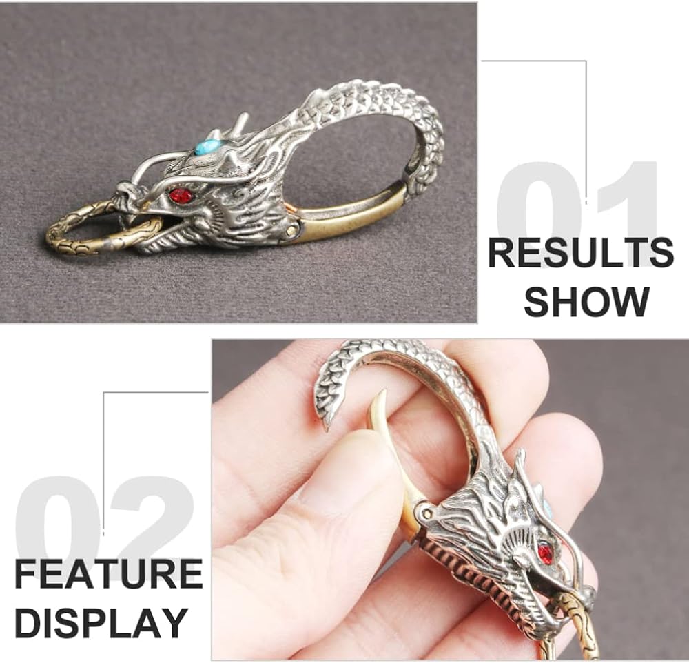 التصميم: تصميم مبتكر وفريد من نوعه على شكل تنين صيني، مظهر رائع، نمط قديم أصلي. حلقات قابلة للفصل والسحب، سهلة التركيب والخلع من حلقة الحزام دون صعوبة فتحها ولن تسقط البضائع الموجودة عليها أيضًا.