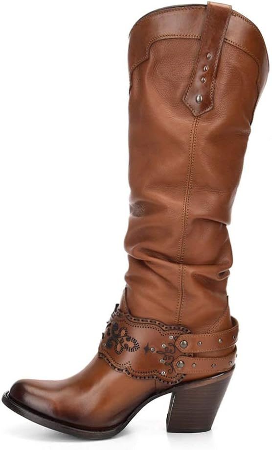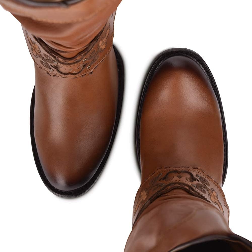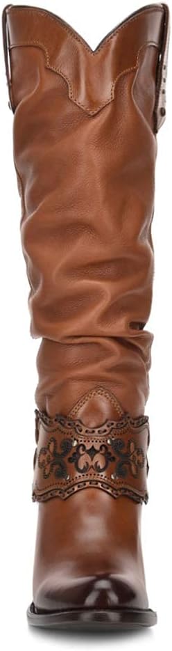 Tall boot for women in bovine leather. With loose tube, which makes it comfortable to wear. It presents harness in the front with perforated details and metallic applications. The metallic applications can also be seen in the back and in the sides. With leather sole with TPU injection. Care: Do not rub excessively to avoid damaging the fine finish of the leather and laser details. Do not apply solvents. Avoid exposing to sharp objects. Maintenance: Wipe with a soft and slightly damp cloth (with clean water) to remove dust, let it dry and then use a polishing sponge.