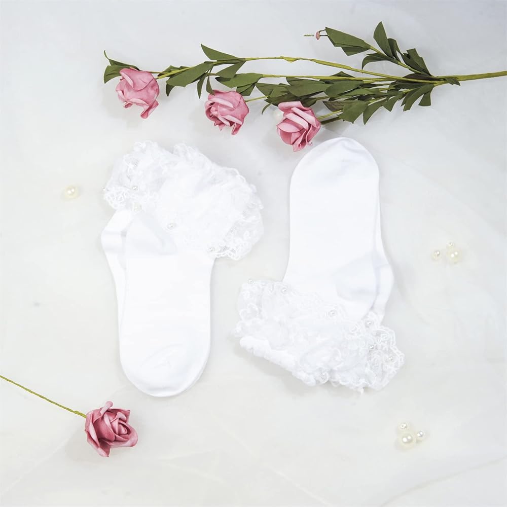 زوجان من الجوارب النسائية ذات الكشكشة والدانتيل اللؤلؤي